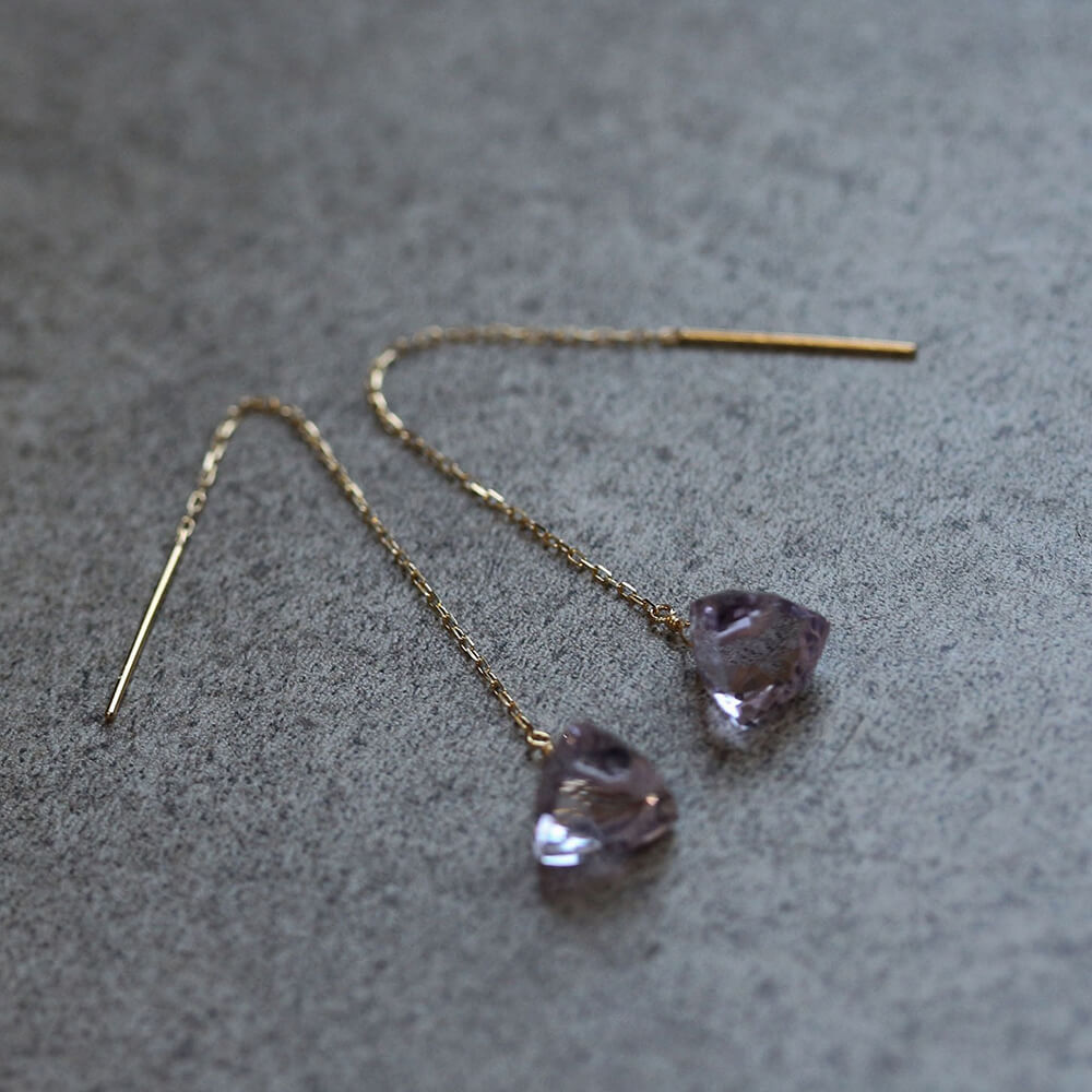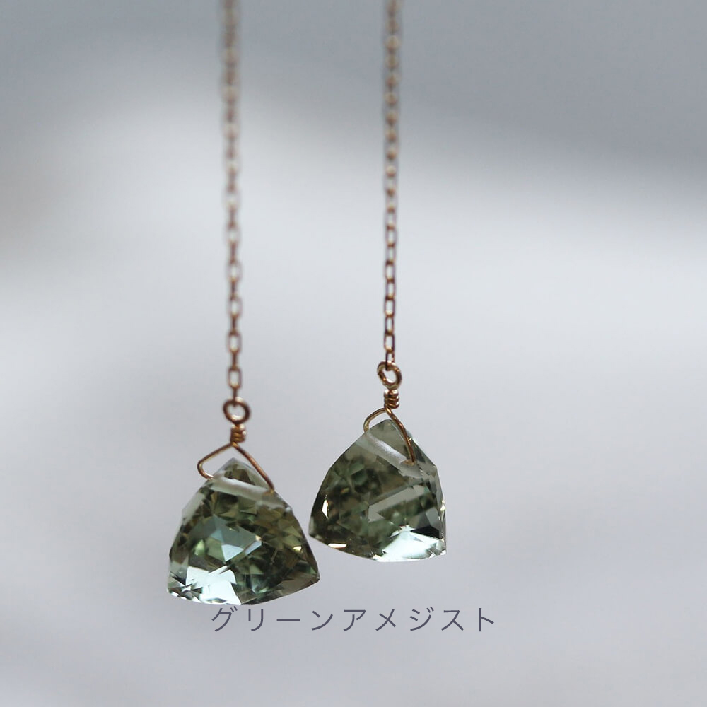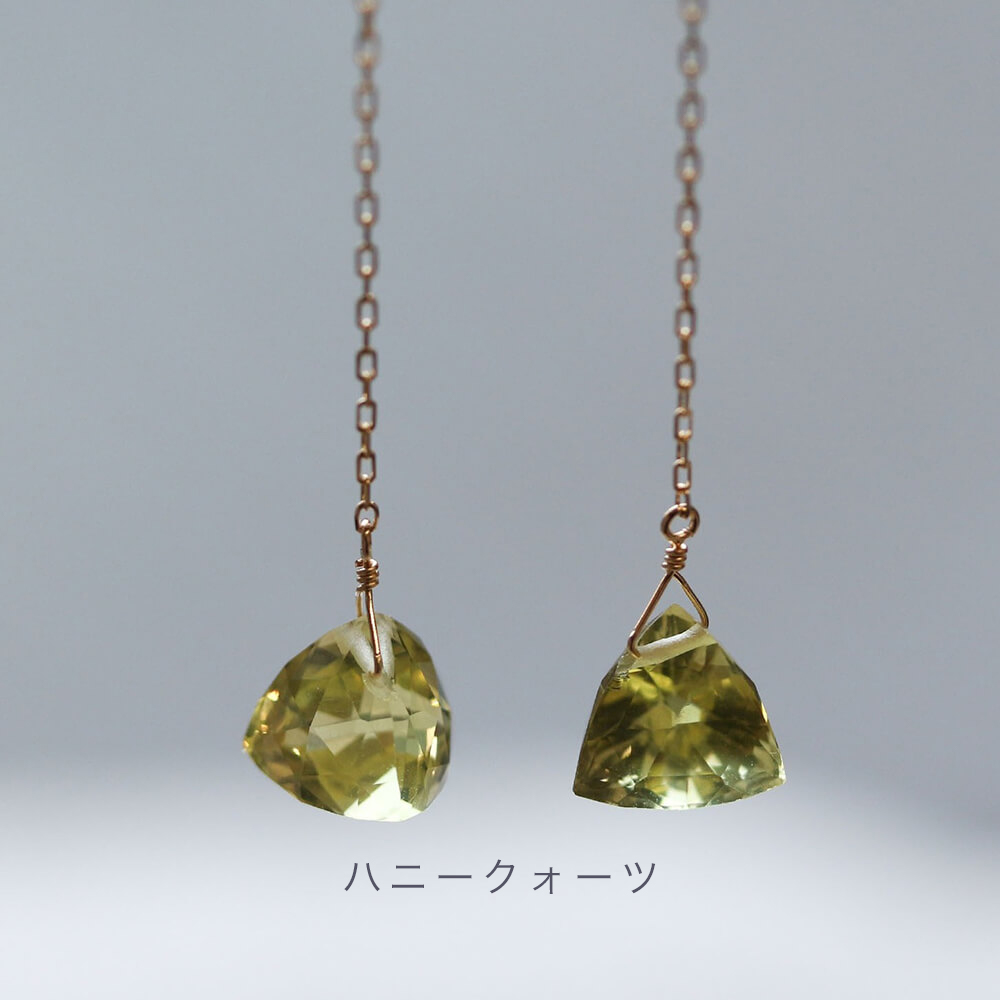 カラーストーン ロング ピアス | K18 〈ピンクアメジスト / グリーンアメジスト / ハニークォーツ〉