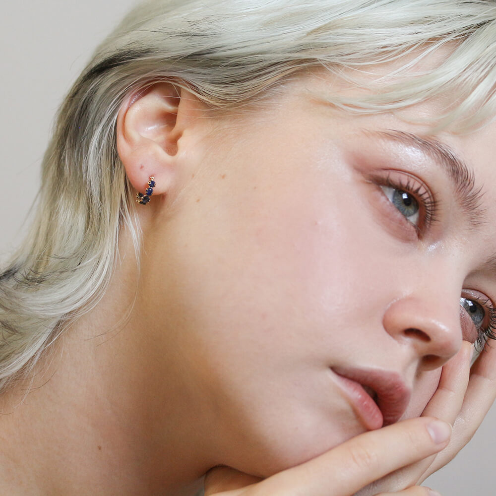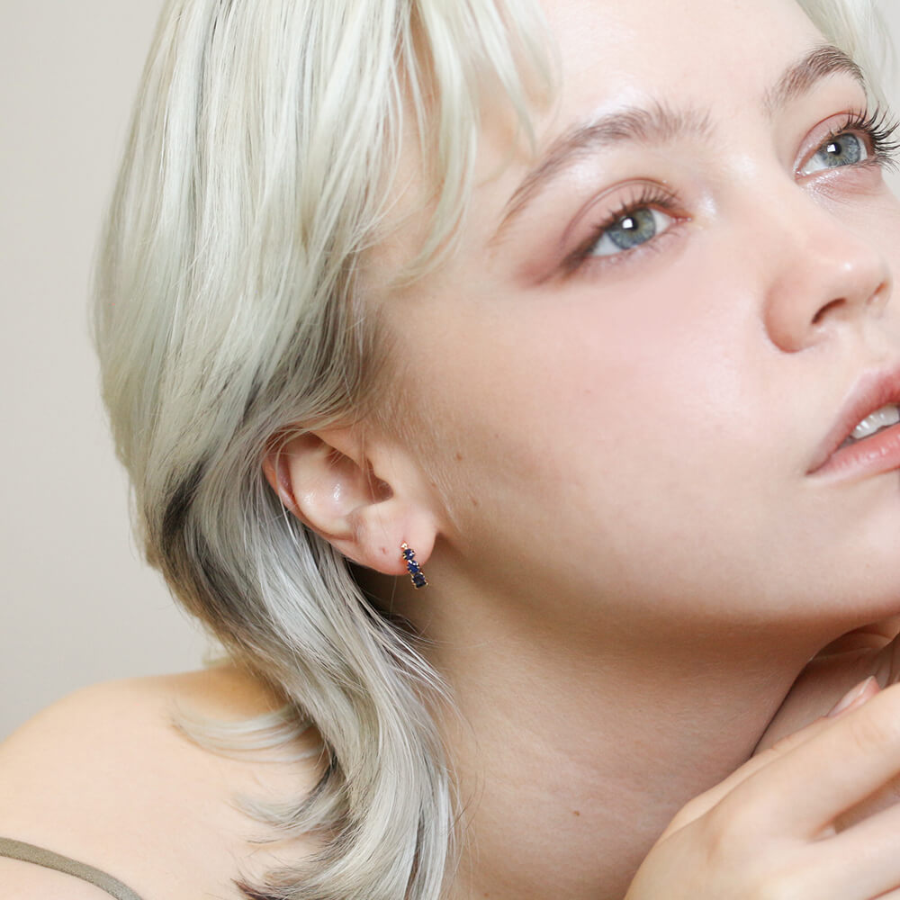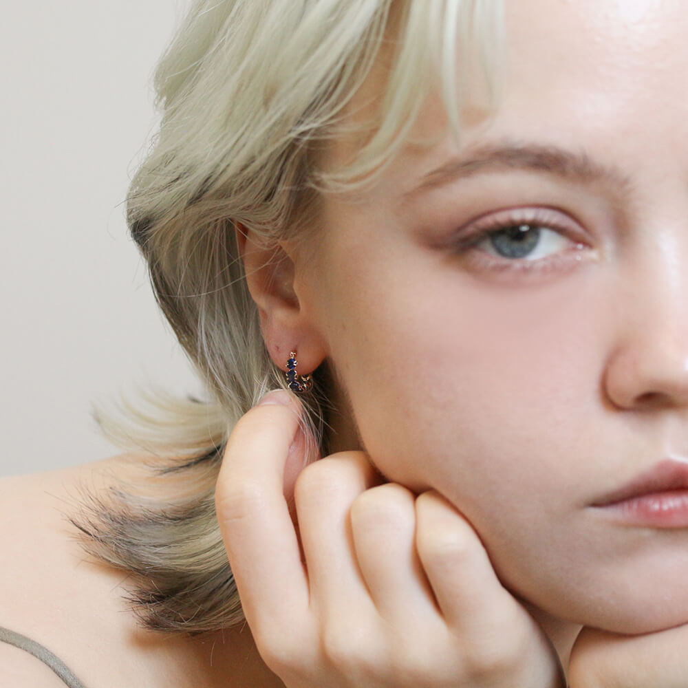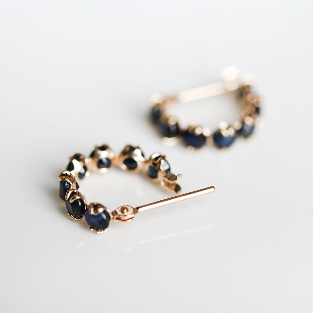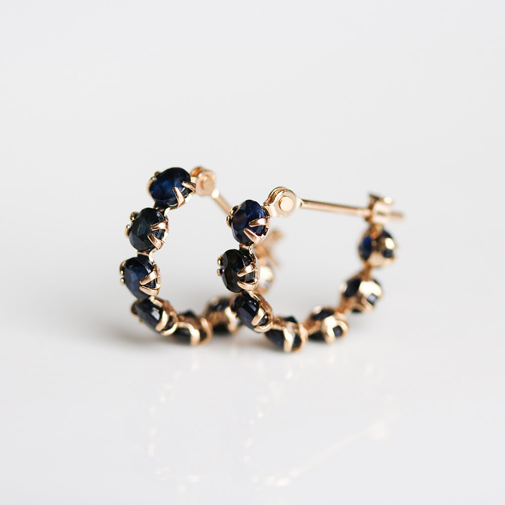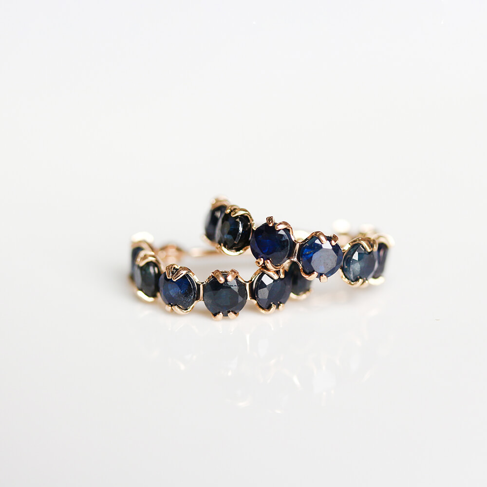 気品溢れる7石のサファイアが、深く濃く輝くフープピアス。