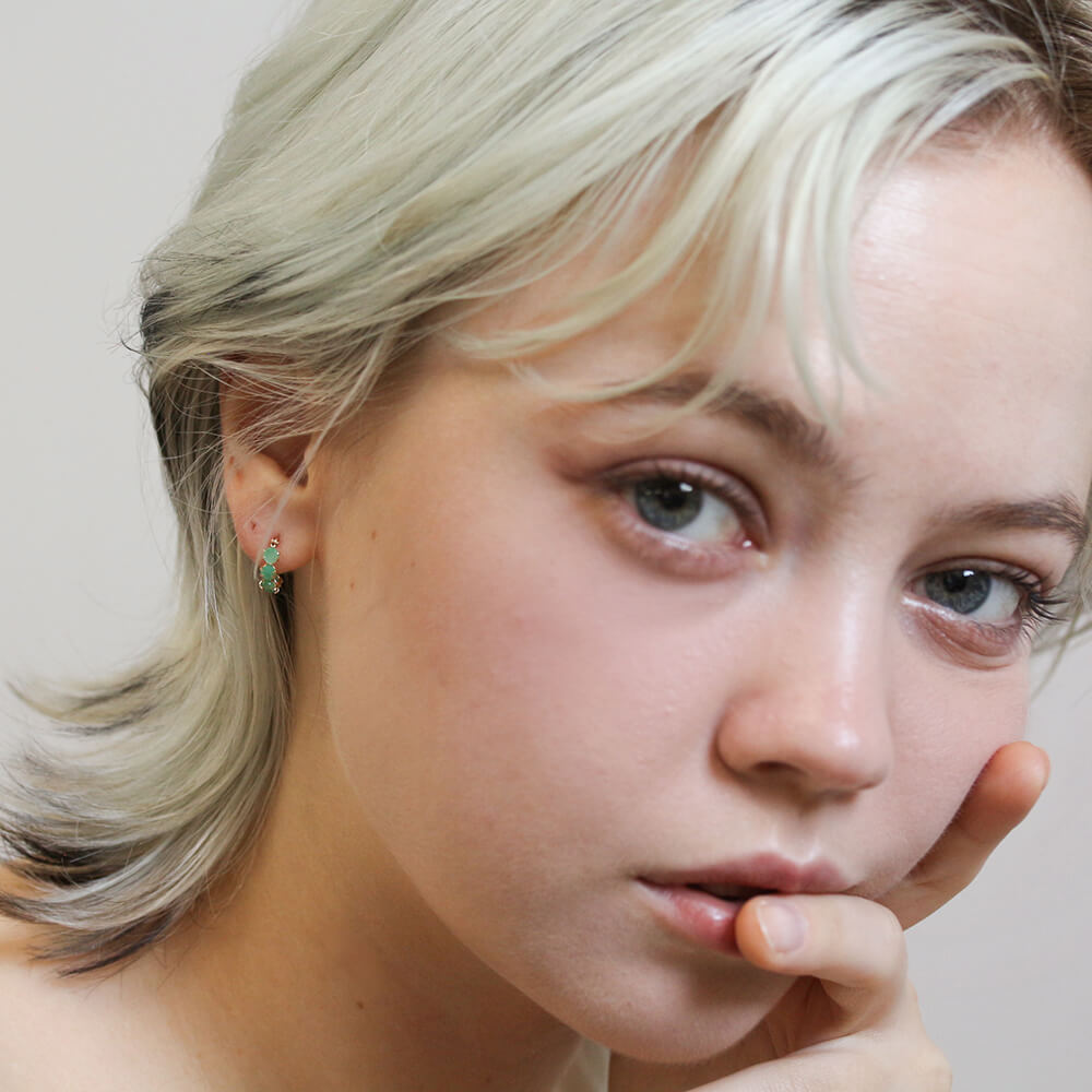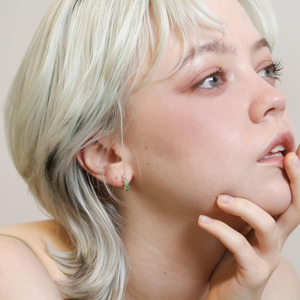 エメラルド スナップ フープ ピアス | K10YG