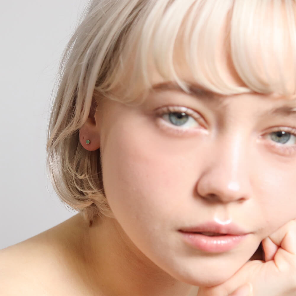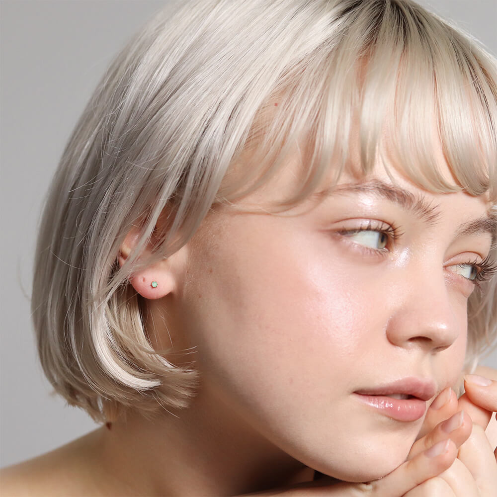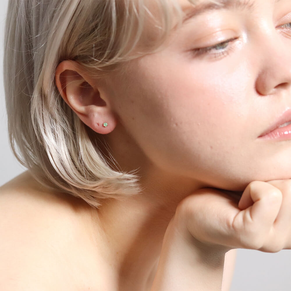 天然石の瑞々しい小さな輝きが、耳元を明るく彩ります。