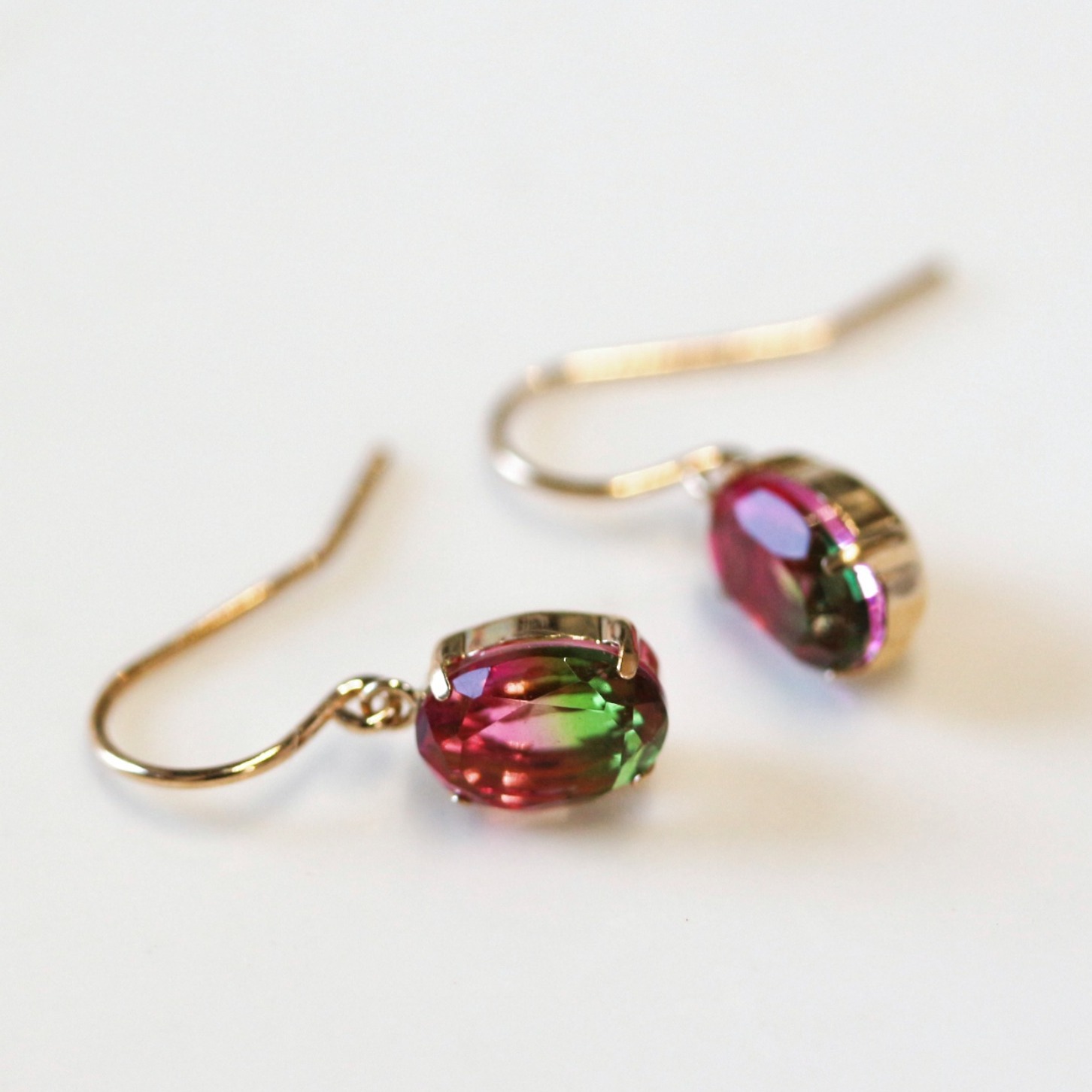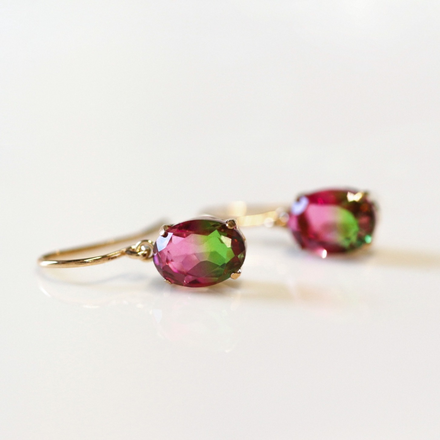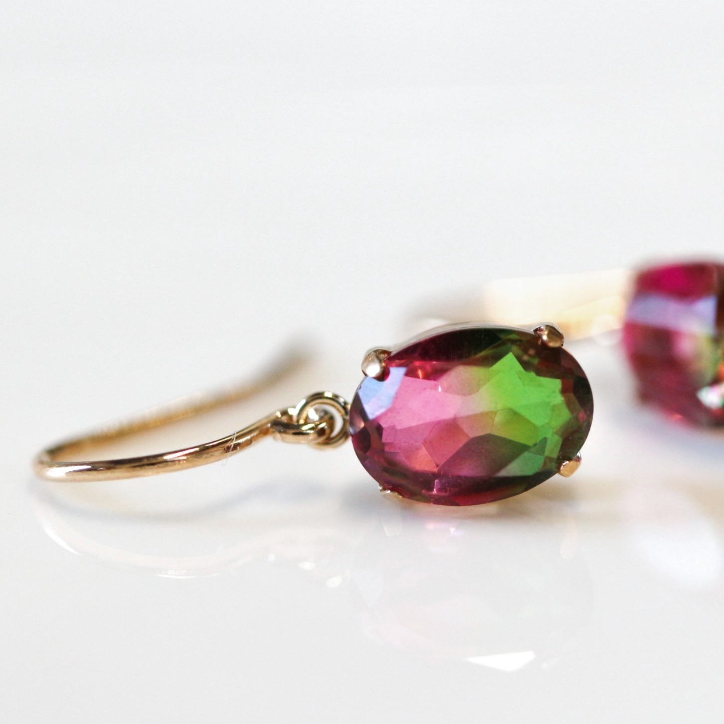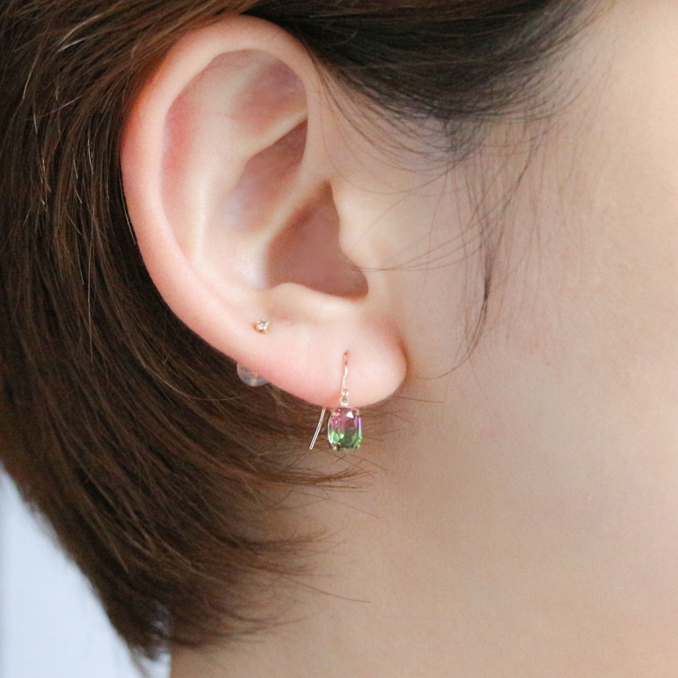グラデーションクリスタルのフック ピアス。