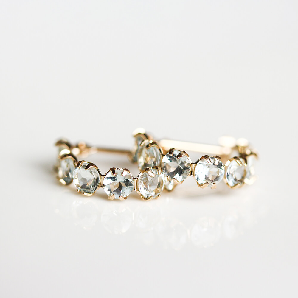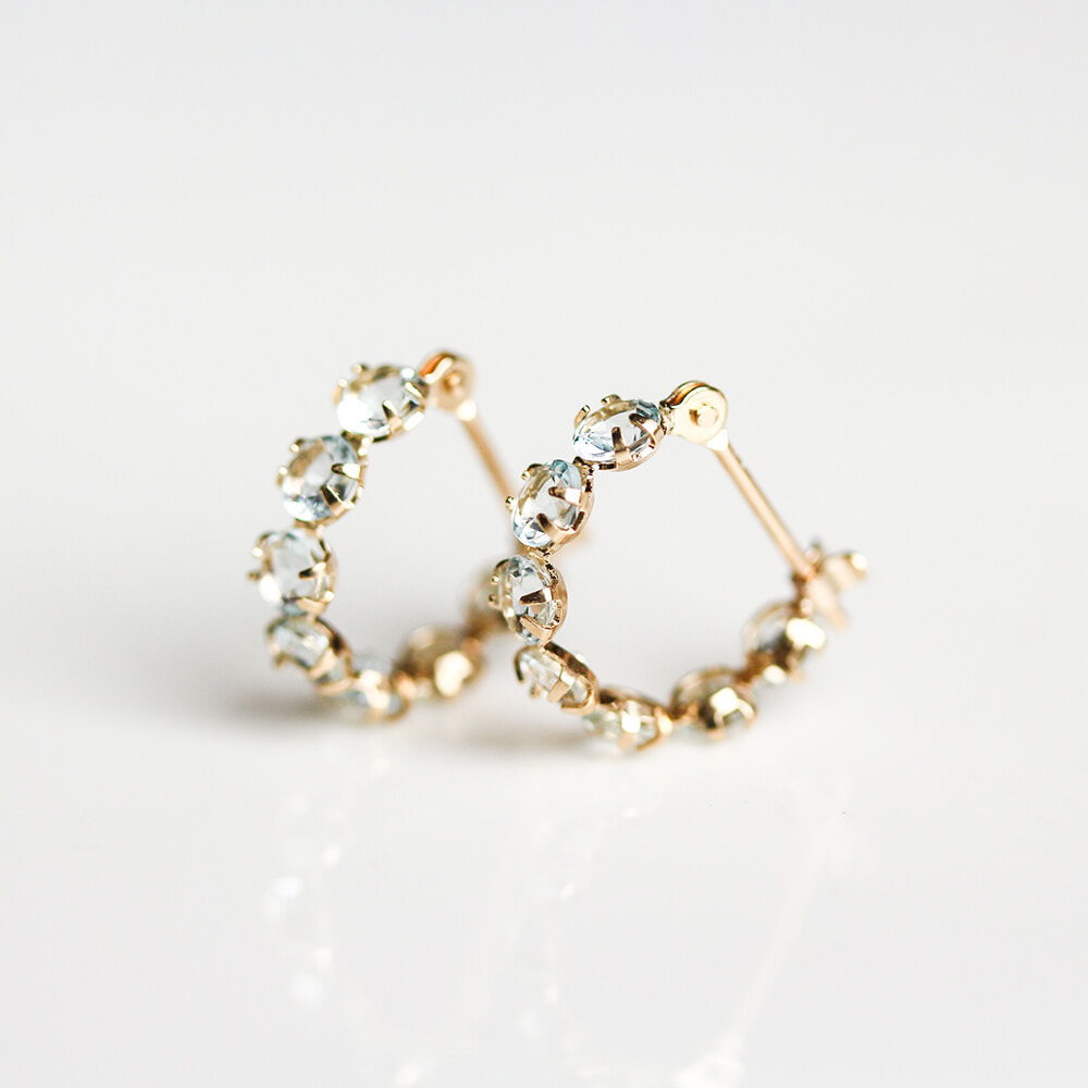 7石のアクアマリンが瑞々しく爽やかに輝くフープピアス。