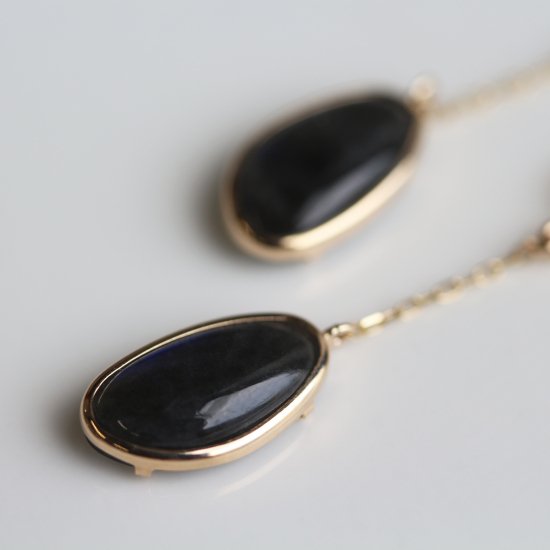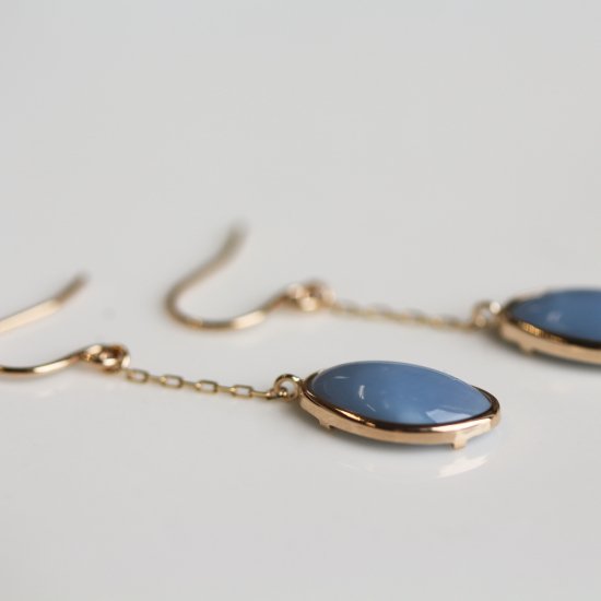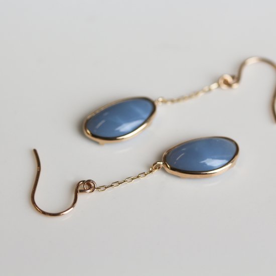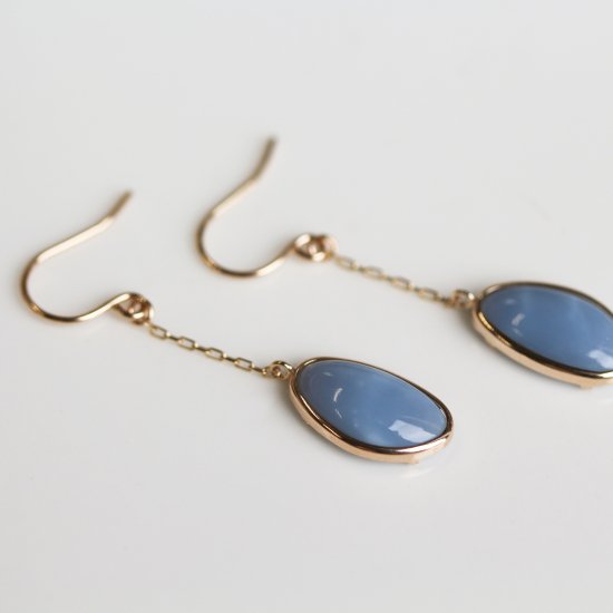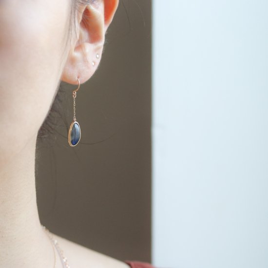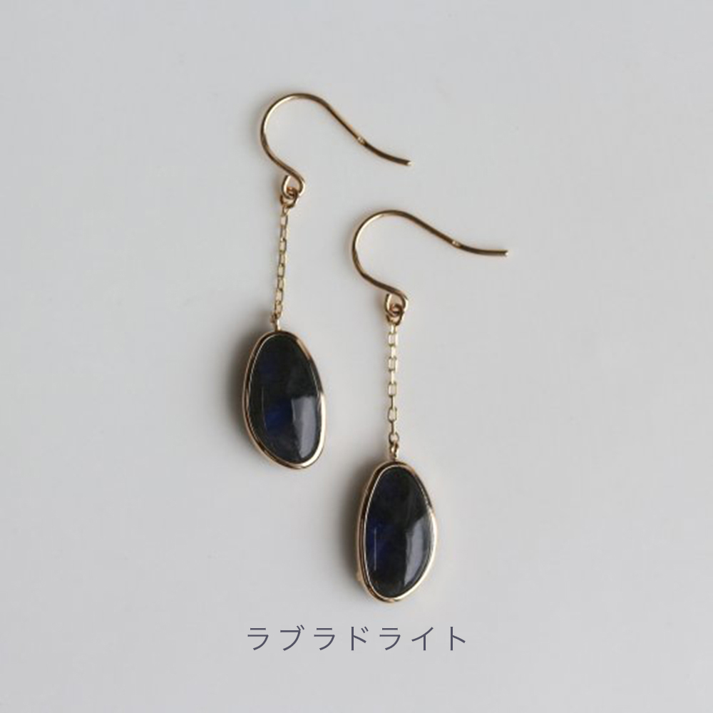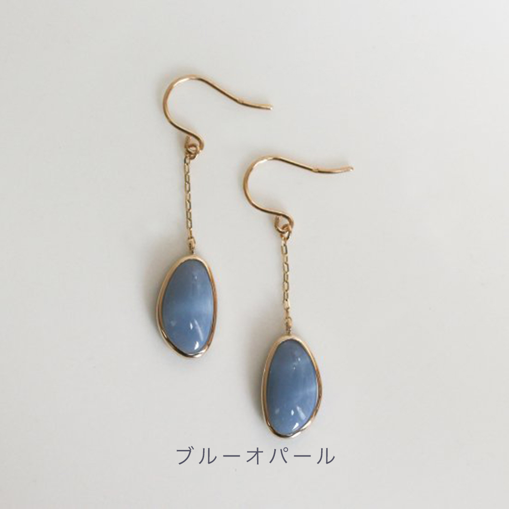 カラーストーン フック ピアス | K10YG 〈ブルーオパール / ラブラドライト〉