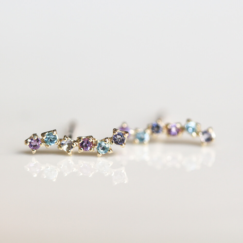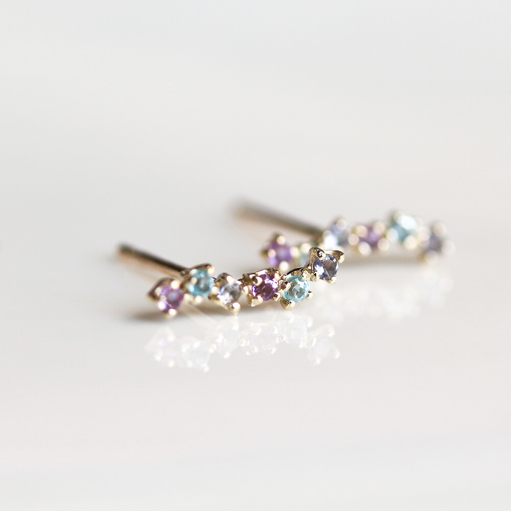 マルチカラーブルーストーン ピアス | K10YG