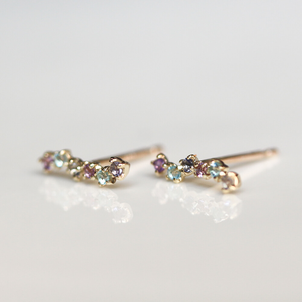 マルチカラーブルーストーン ピアス  | K10YG