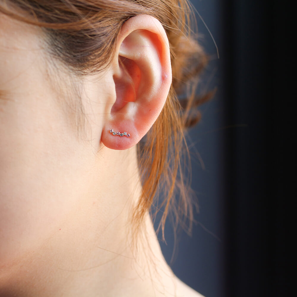 控えめな輝きがカジュアルスタイルにクラス感をプラスする、キュービックジルコニアのスタッドピアス。