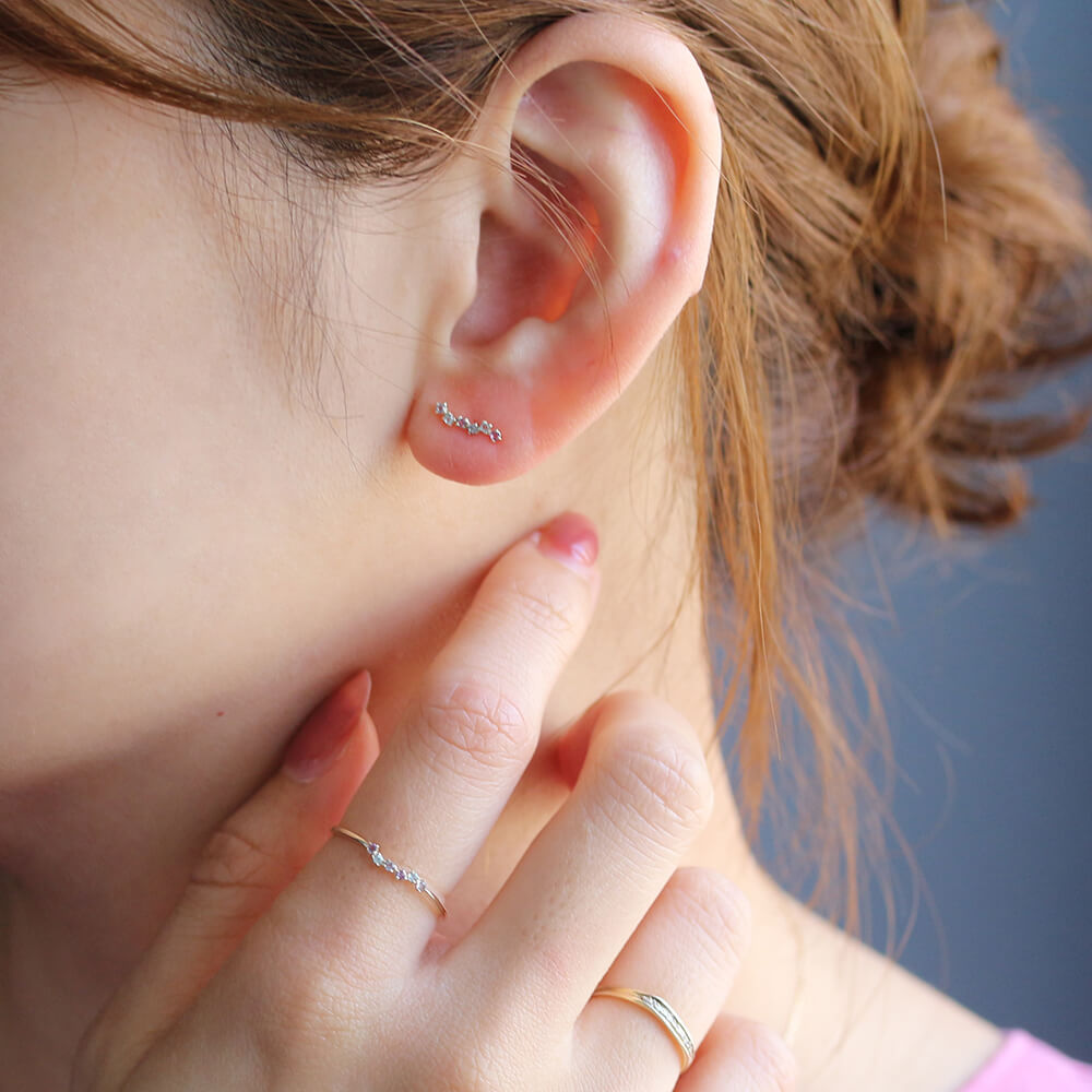 程よいサイズ感なので、オフィスコーデにはもちろん、ホールの数が多い方は重ね付けもお楽しみ頂けます。