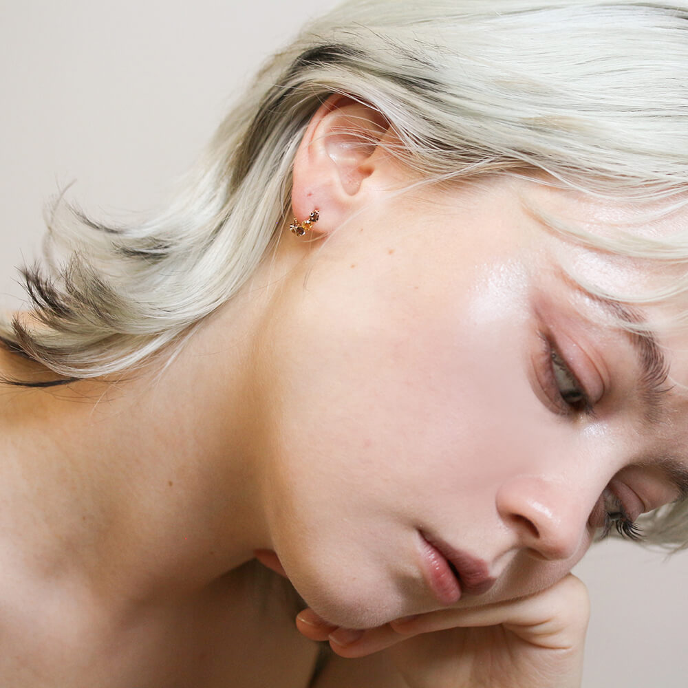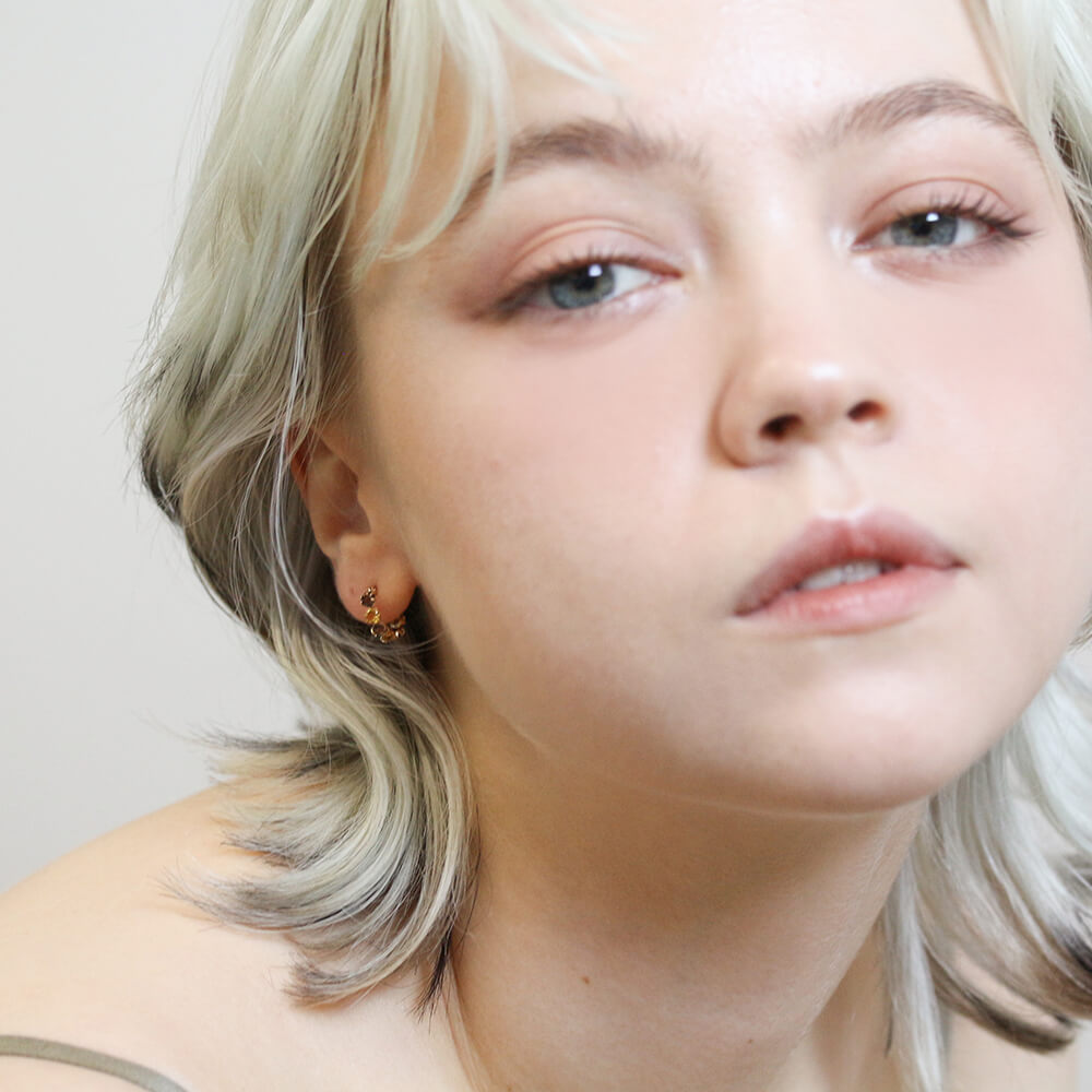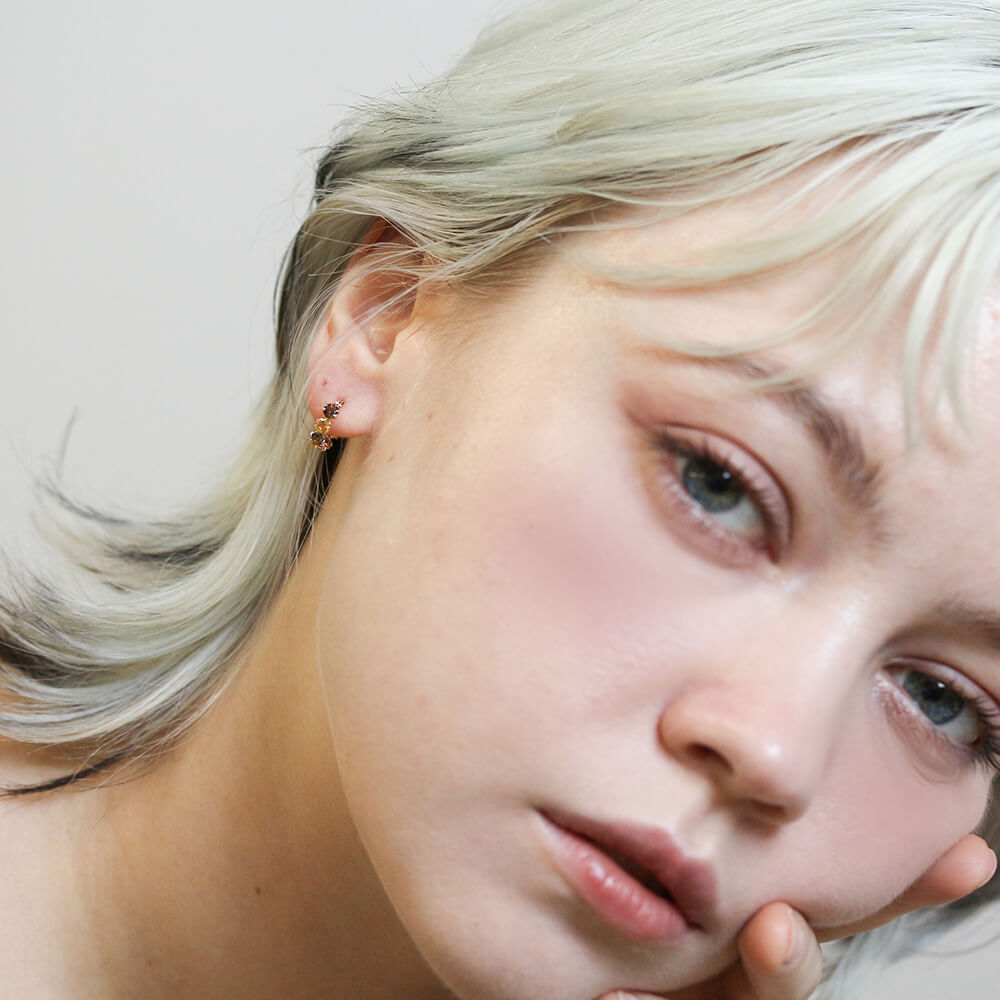 天然石の瑞々しい小さな輝きが、耳元を明るく彩ります。