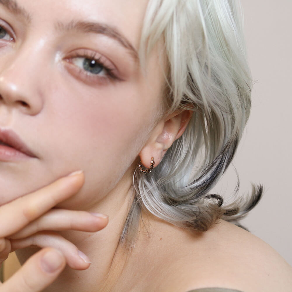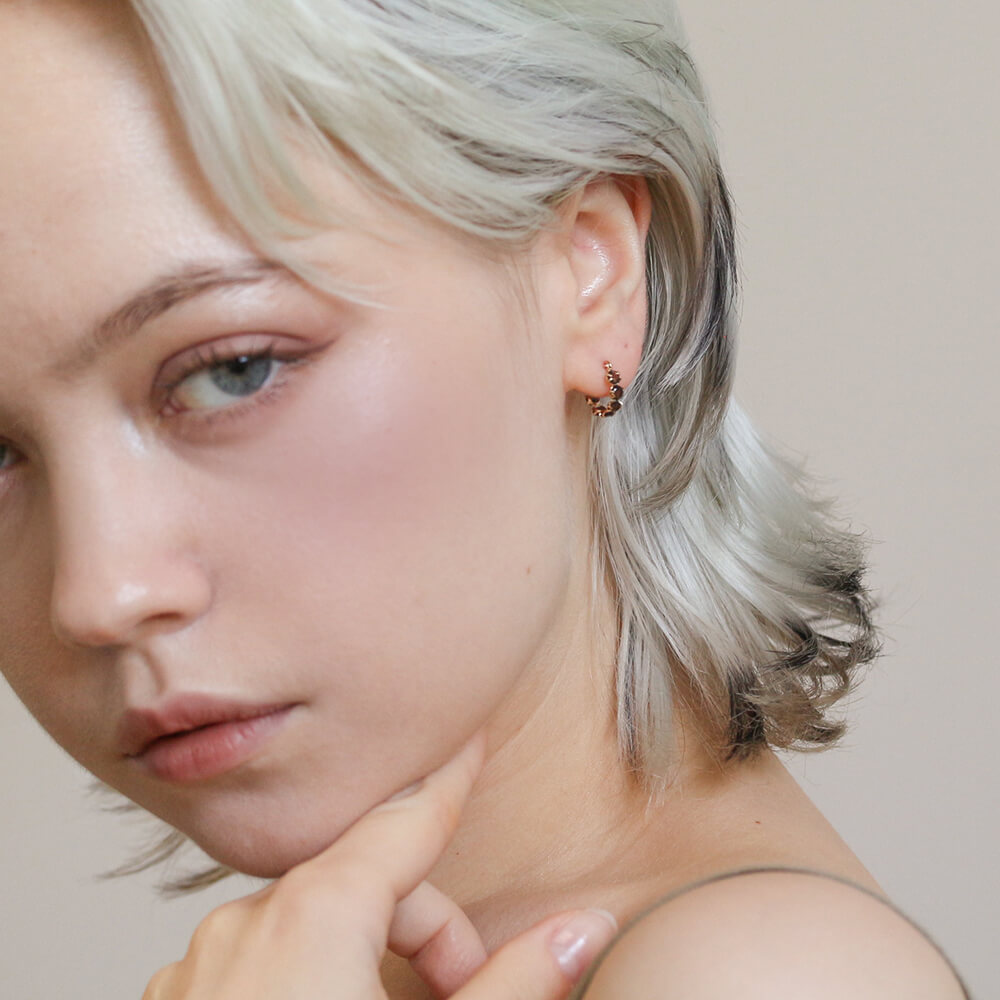 瑞々しく輝く天然石のフープピアスです。石を連ねたデザインで、どの角度からも輝きをお楽しみいただけます。