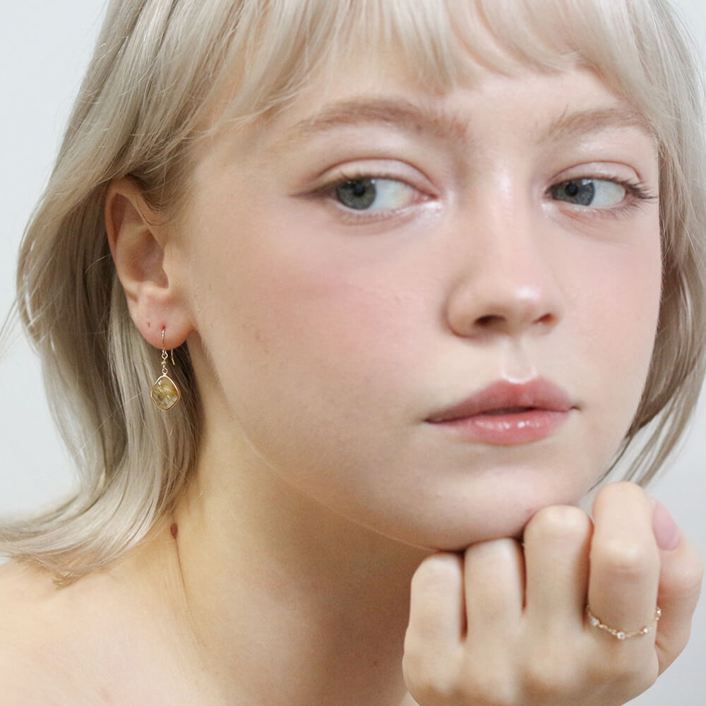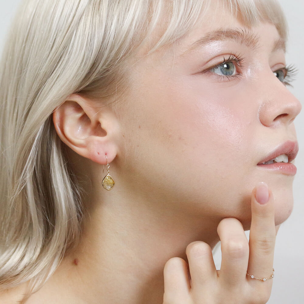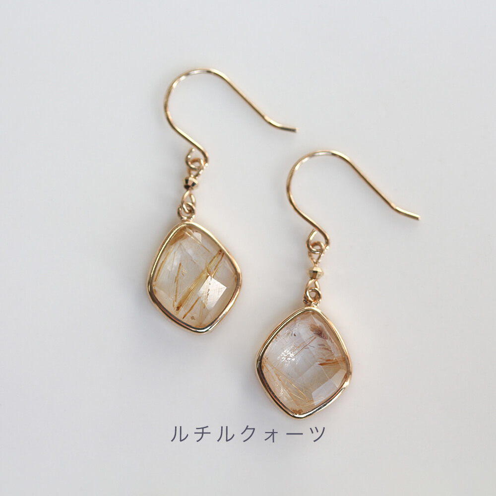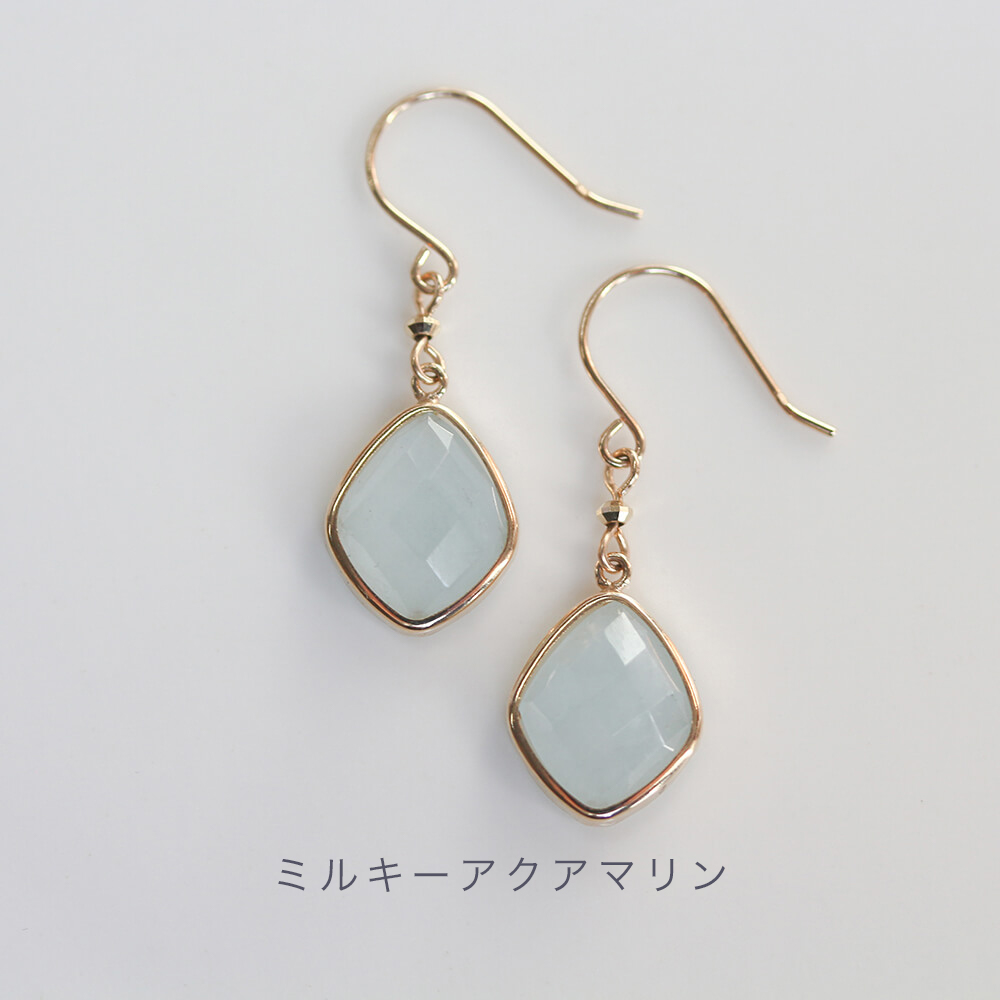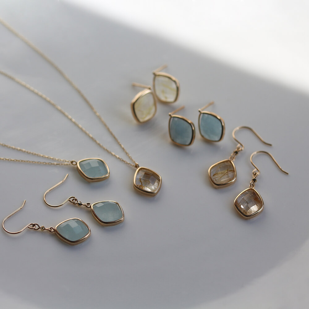 カラーストーン フック ピアス | K10YG 〈ミルキーアクアマリン / ルチルクォーツ〉