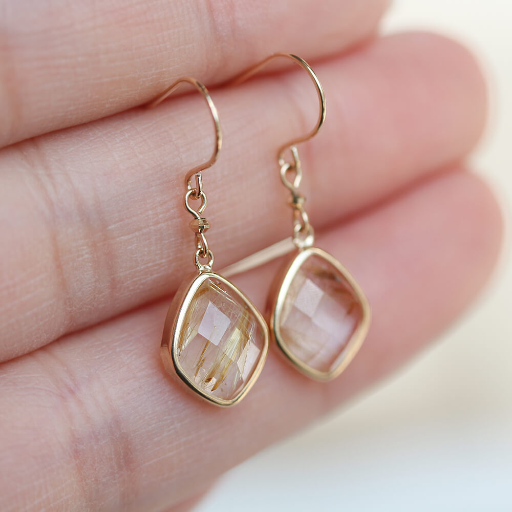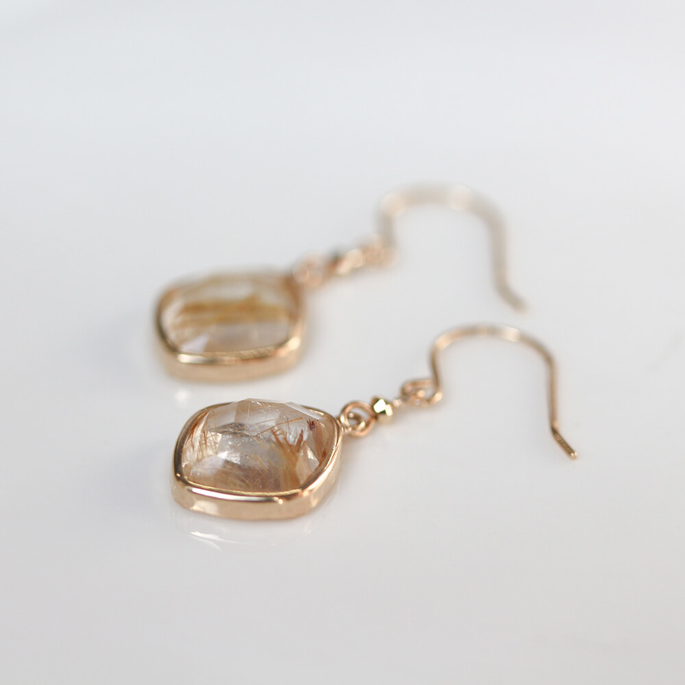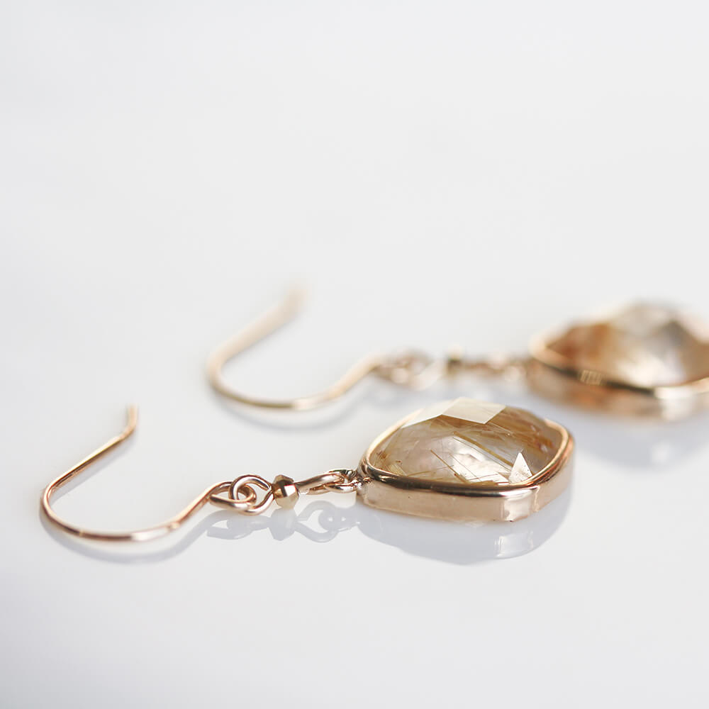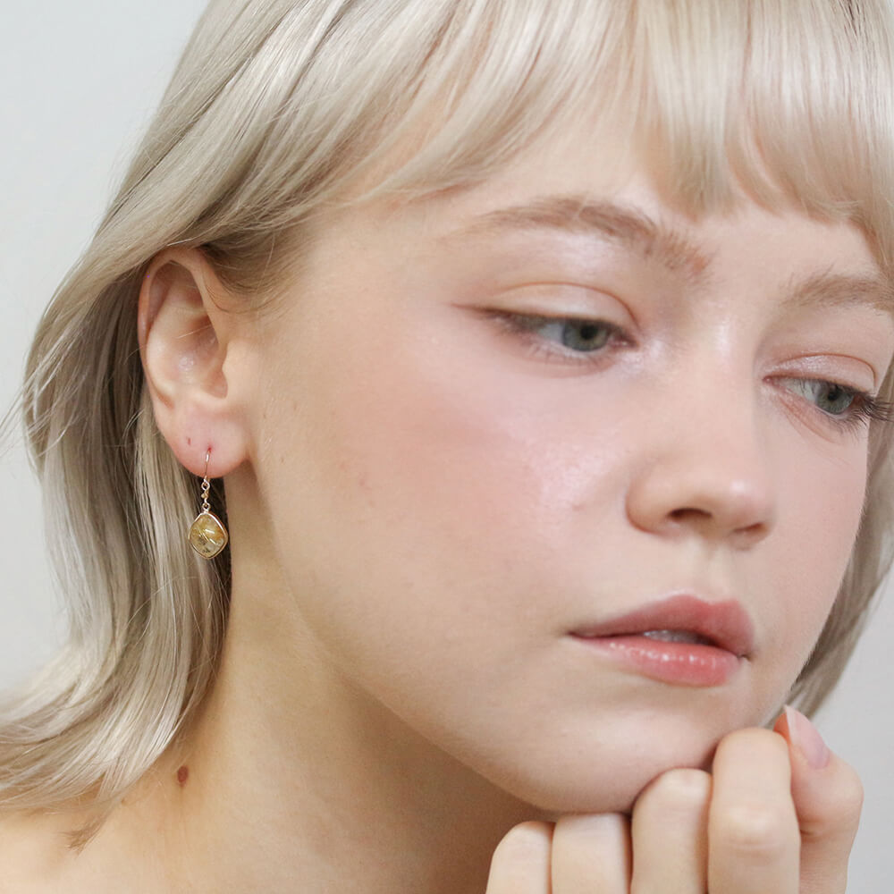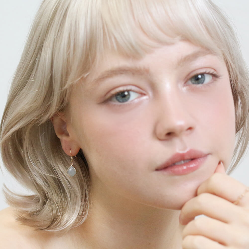 カラーストーン フック ピアス | K10YG 〈ミルキーアクアマリン / ルチルクォーツ〉