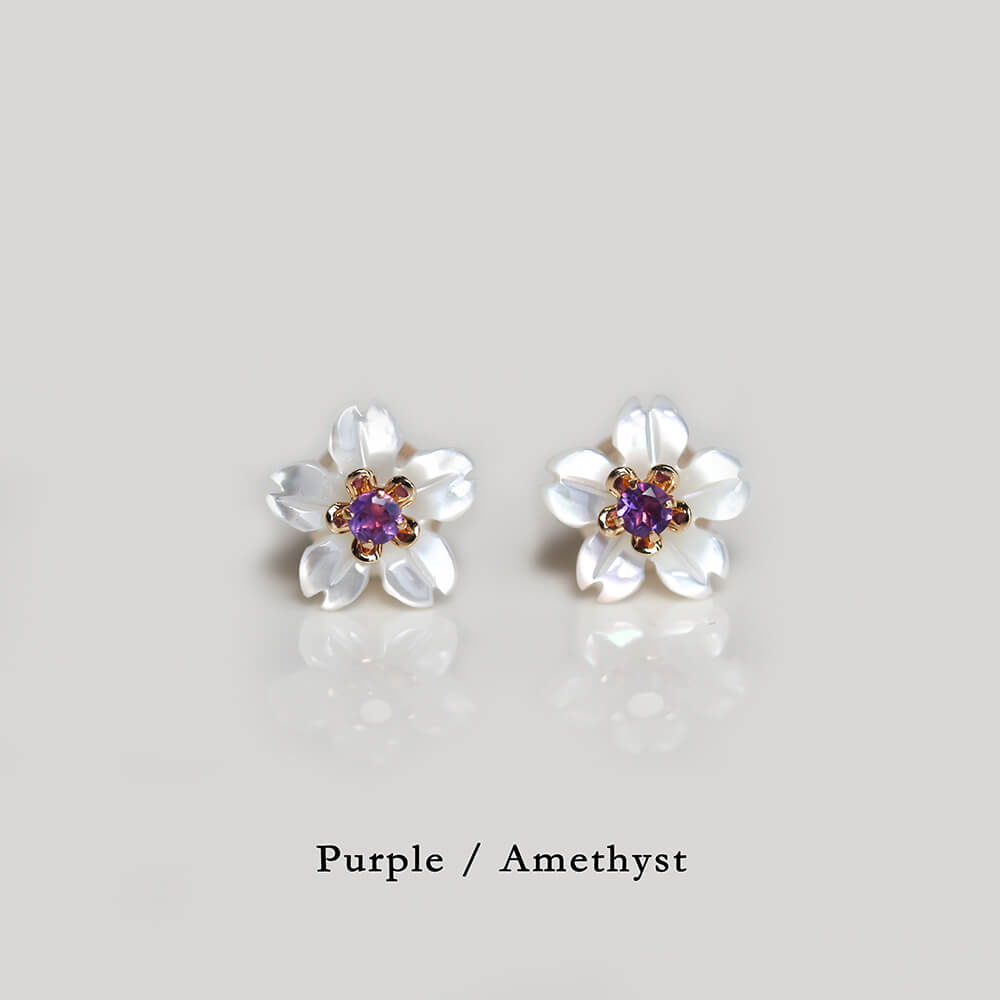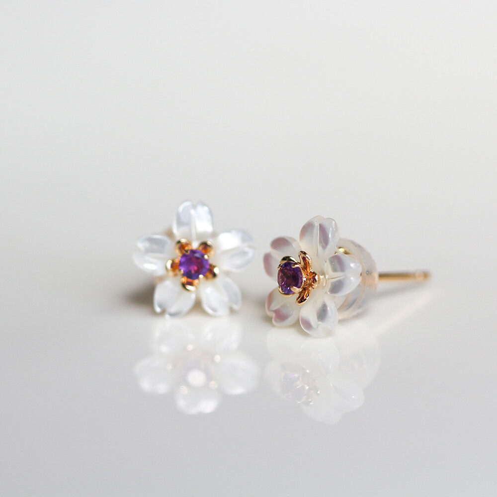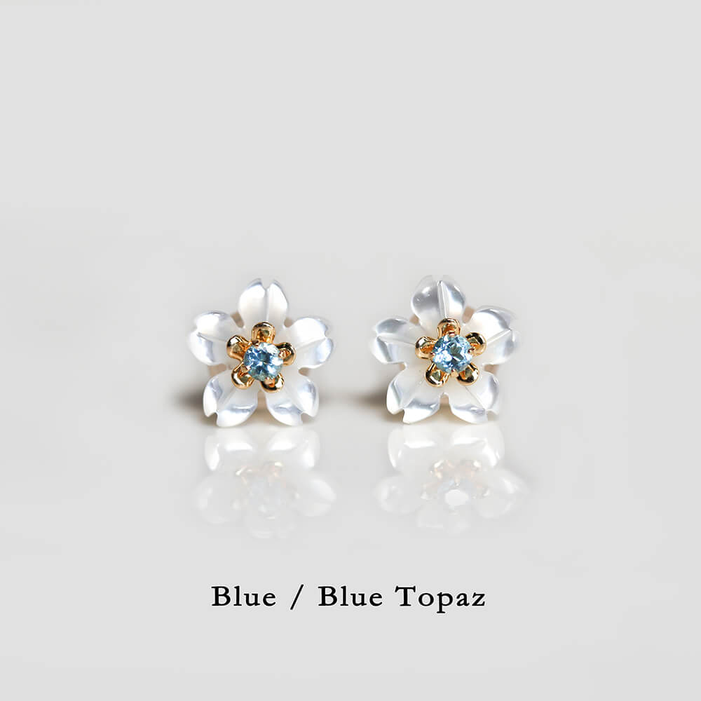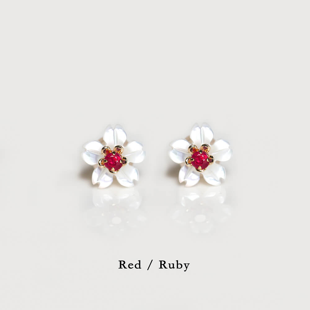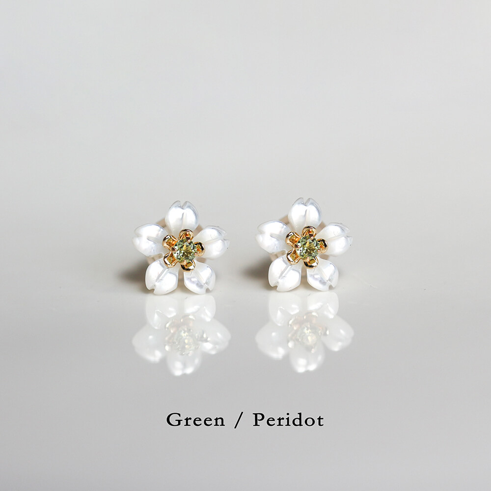 シェル / カラーストーン サクラ フラワー ピアス | K18 〈誕生石〉