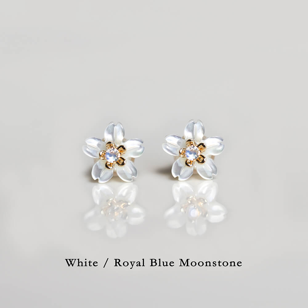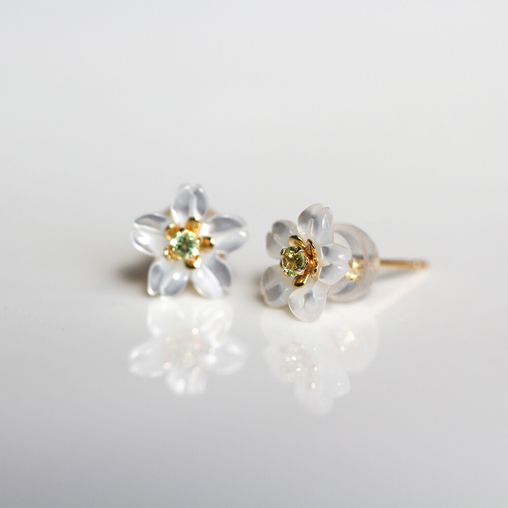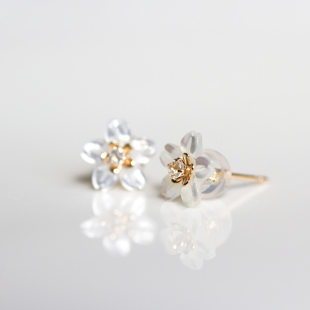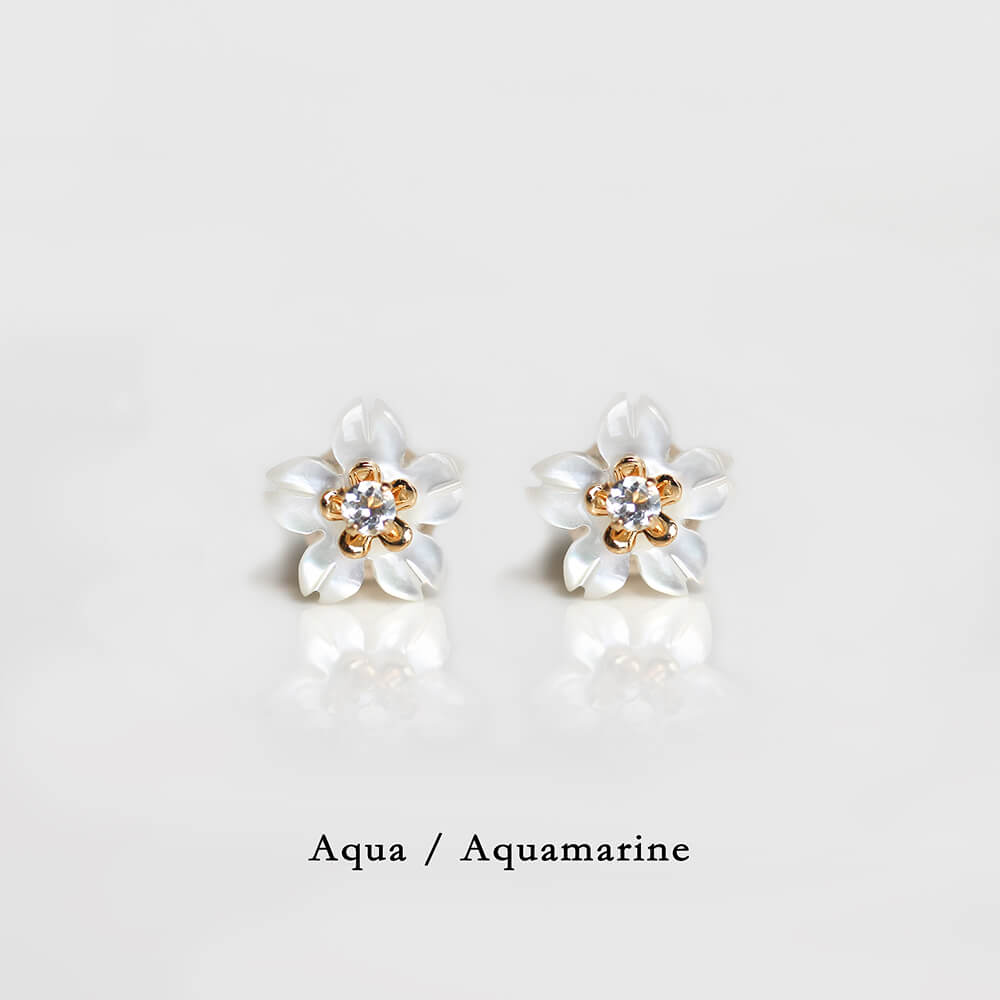 シェル / カラーストーン サクラ フラワー ピアス | K18 〈誕生石〉
