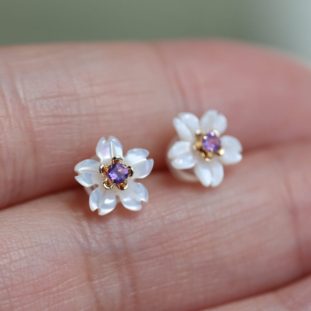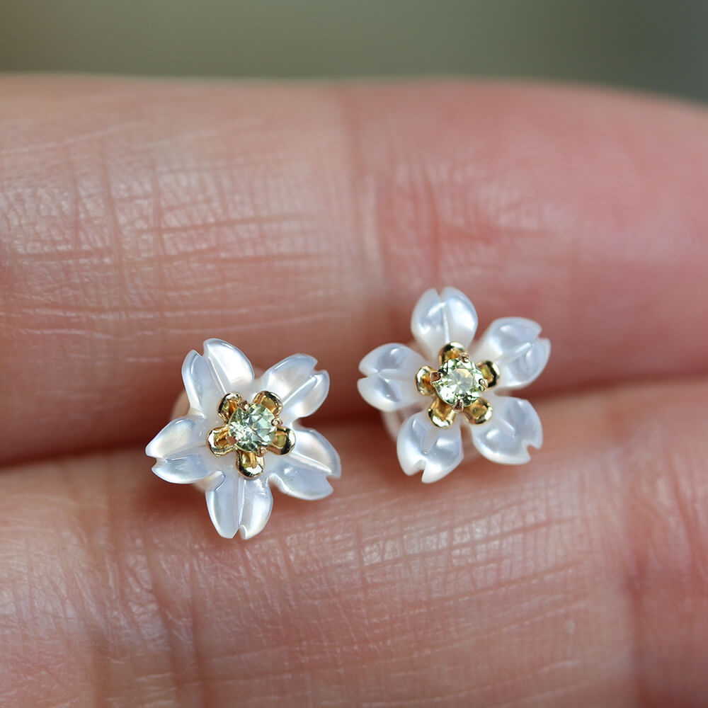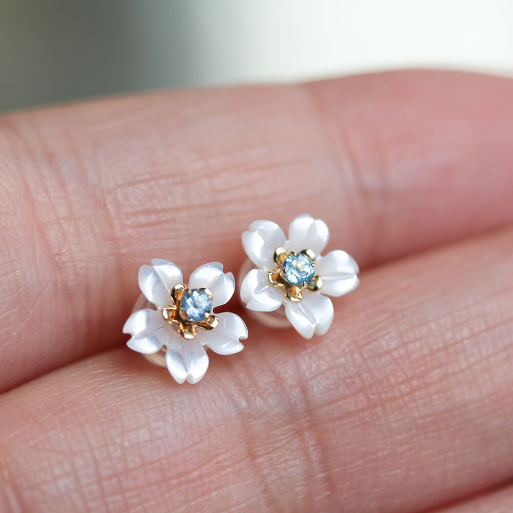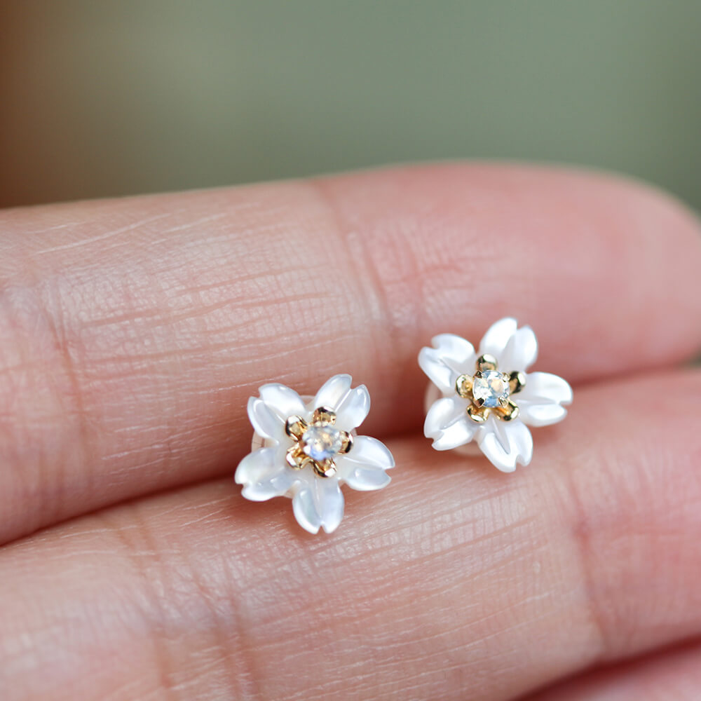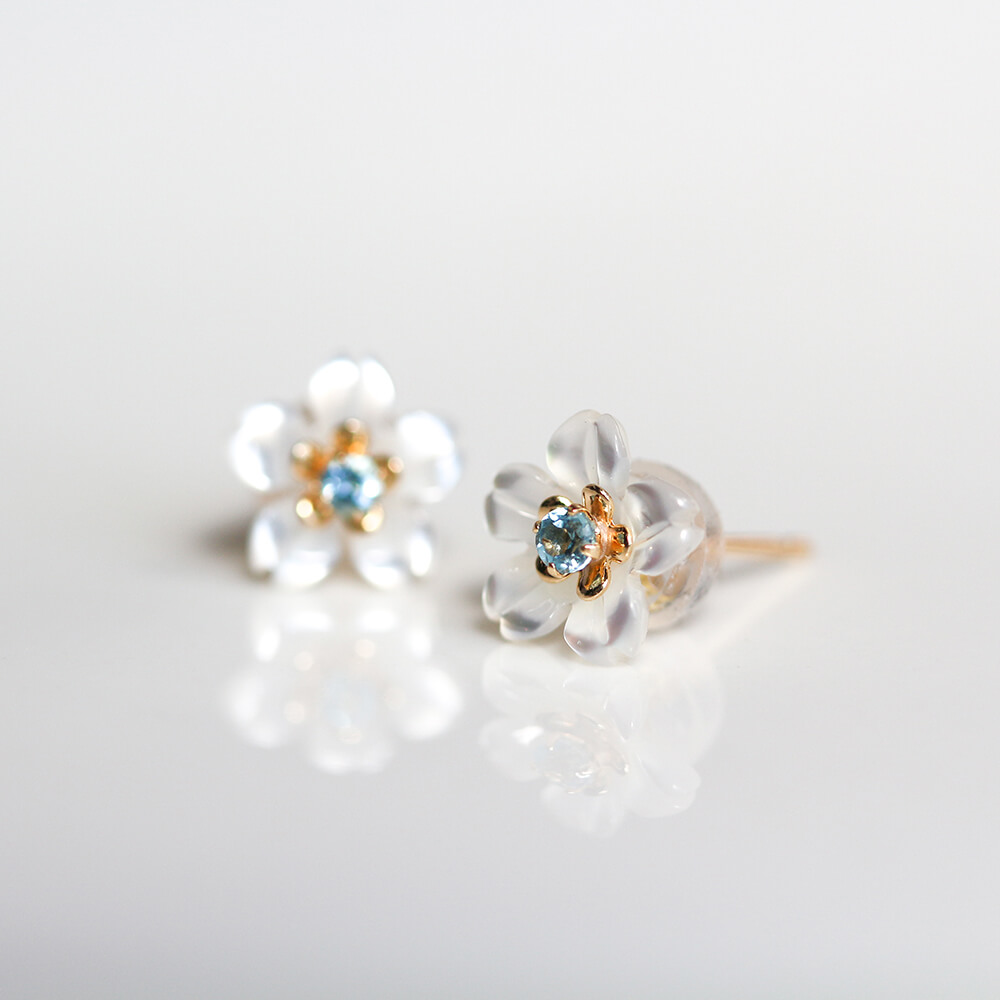 シェル / カラーストーン サクラ フラワー ピアス | K18 〈誕生石〉