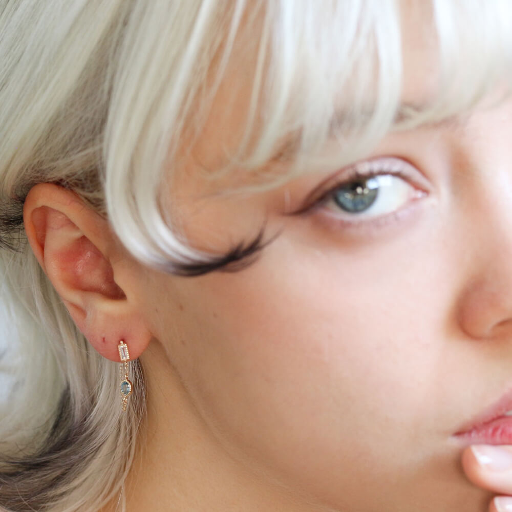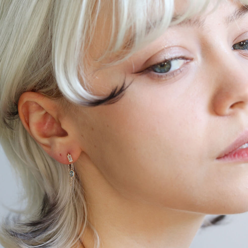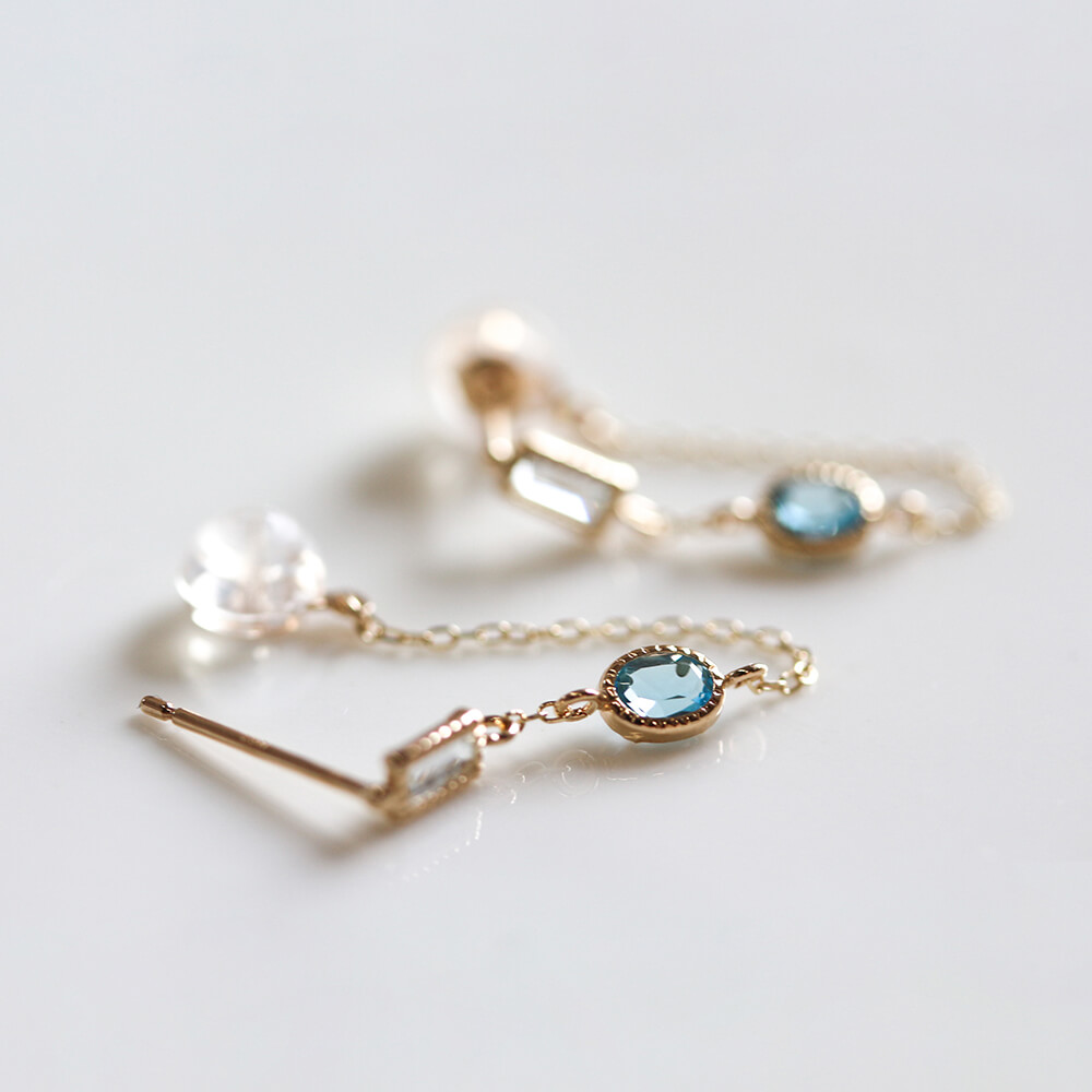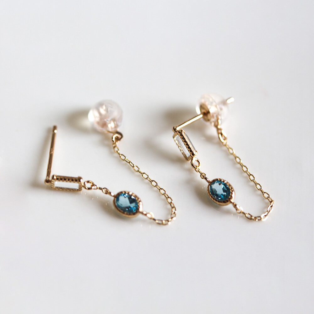 アクアマリン / ブルートパーズ チェーン フープ ピアス | K10YG