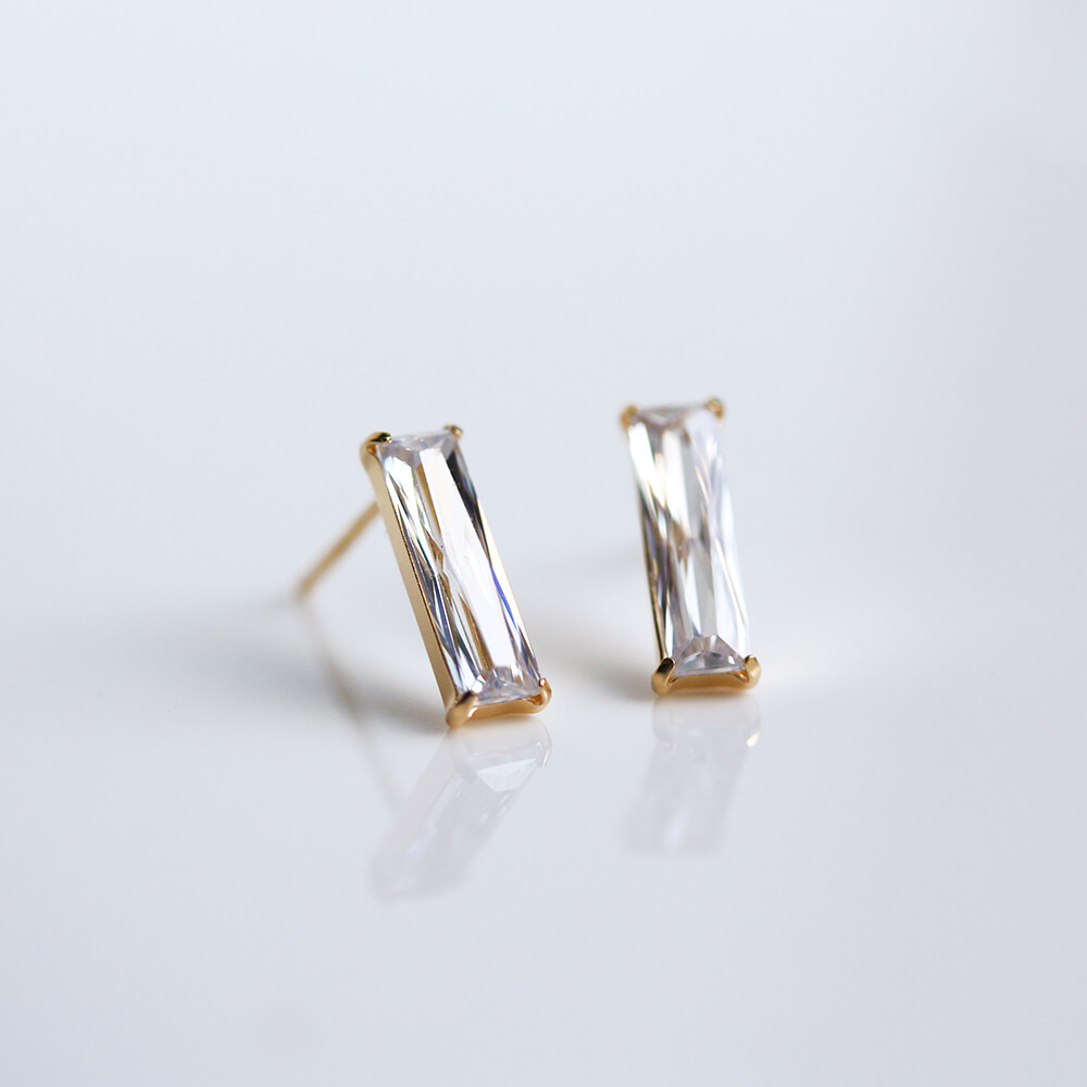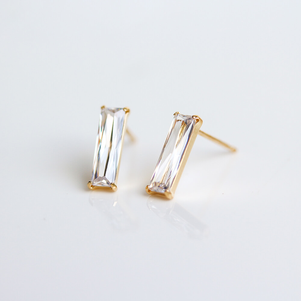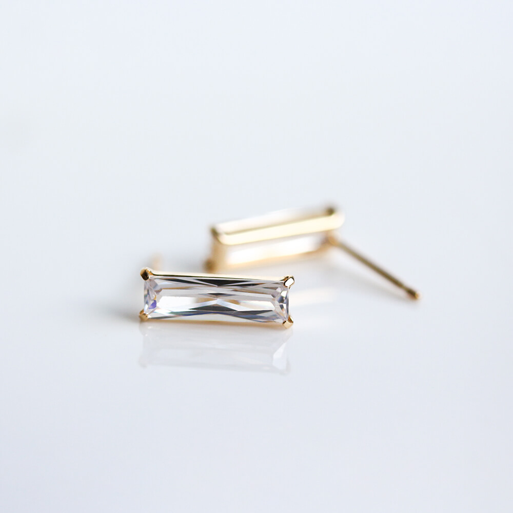 長めのバゲットカットが珍しい、ありそうでないシンプルなジュエリーです。