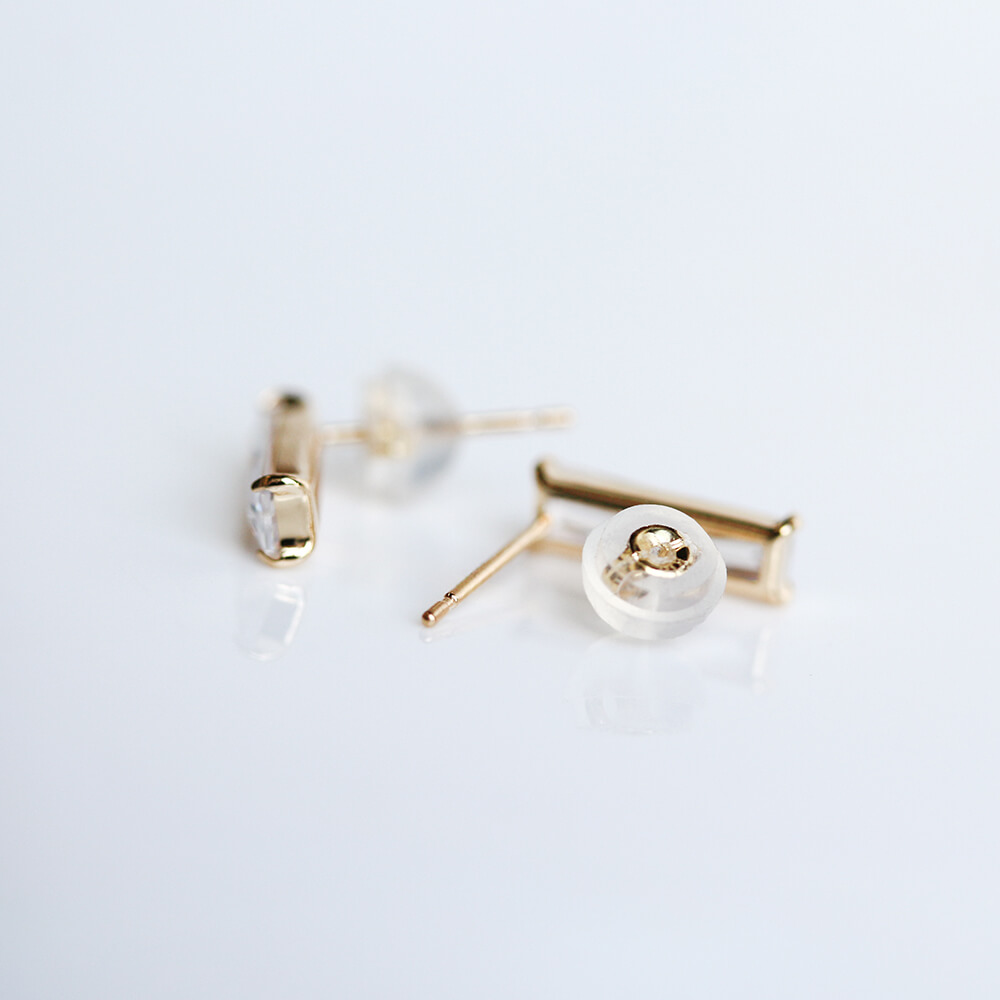 控えめな輝きがカジュアルスタイルにクラス感をプラスする、キュービックジルコニアのスタッドピアス。