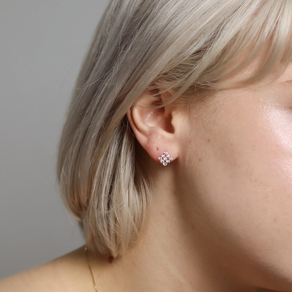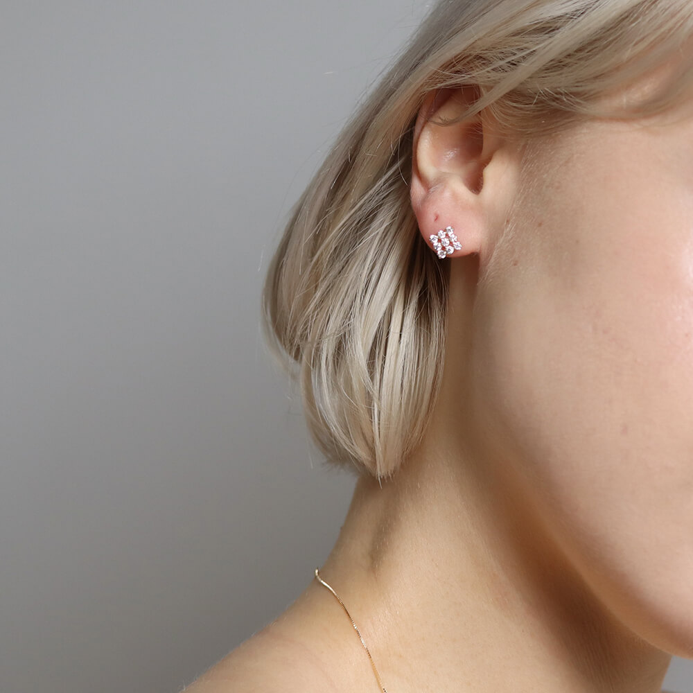 9石のキュービックジルコニアがあしらわれたスタッドピアス。