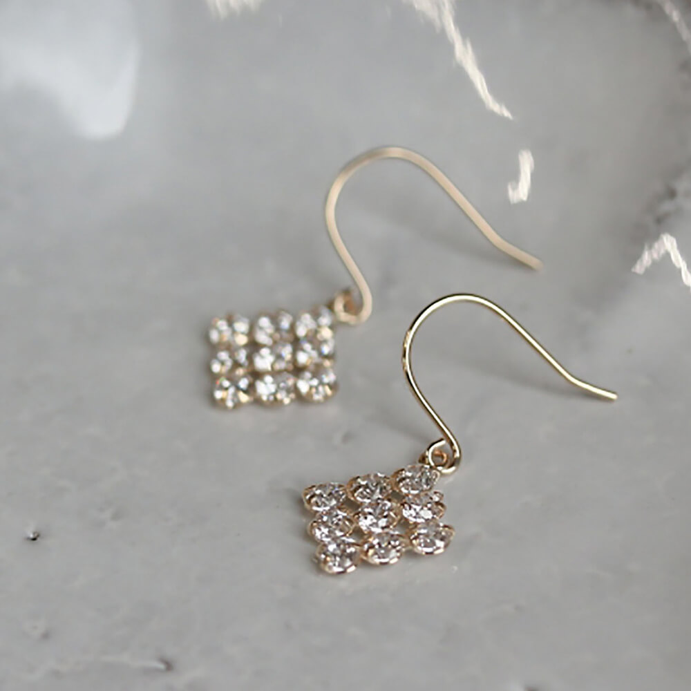 9石のキュービックジルコニアがあしらわれたフックピアス。