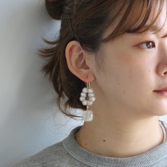 淡水パールをチェーンにあしらったチェーンイヤリング。