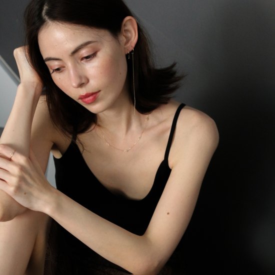 ロングチェーンとのレイヤードでよりゴールドとの輝きを楽しむコーディネートもオススメです。