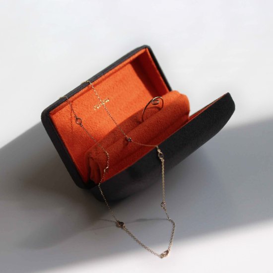 着用後は乾いた柔らかい布で拭き取り、直射日光、湿気、熱を避けて保管すると美しい輝きを保つ事ができます。
