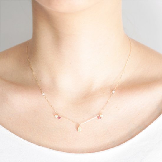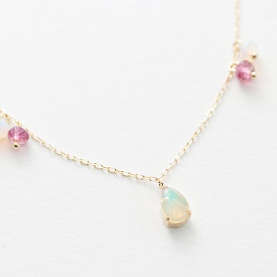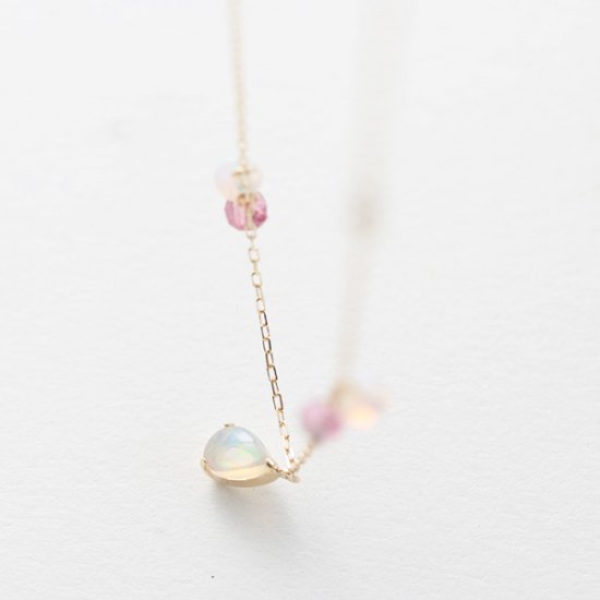 相性の良い3種類の天然石が互いの良さを引き立てているオパールネックレス。