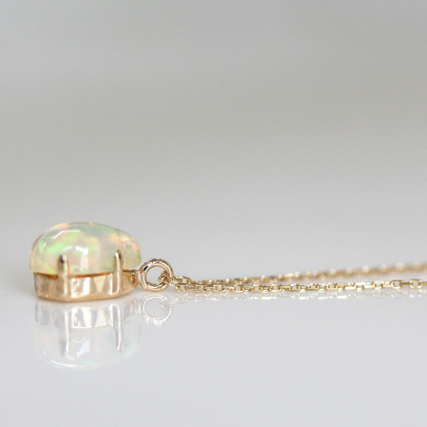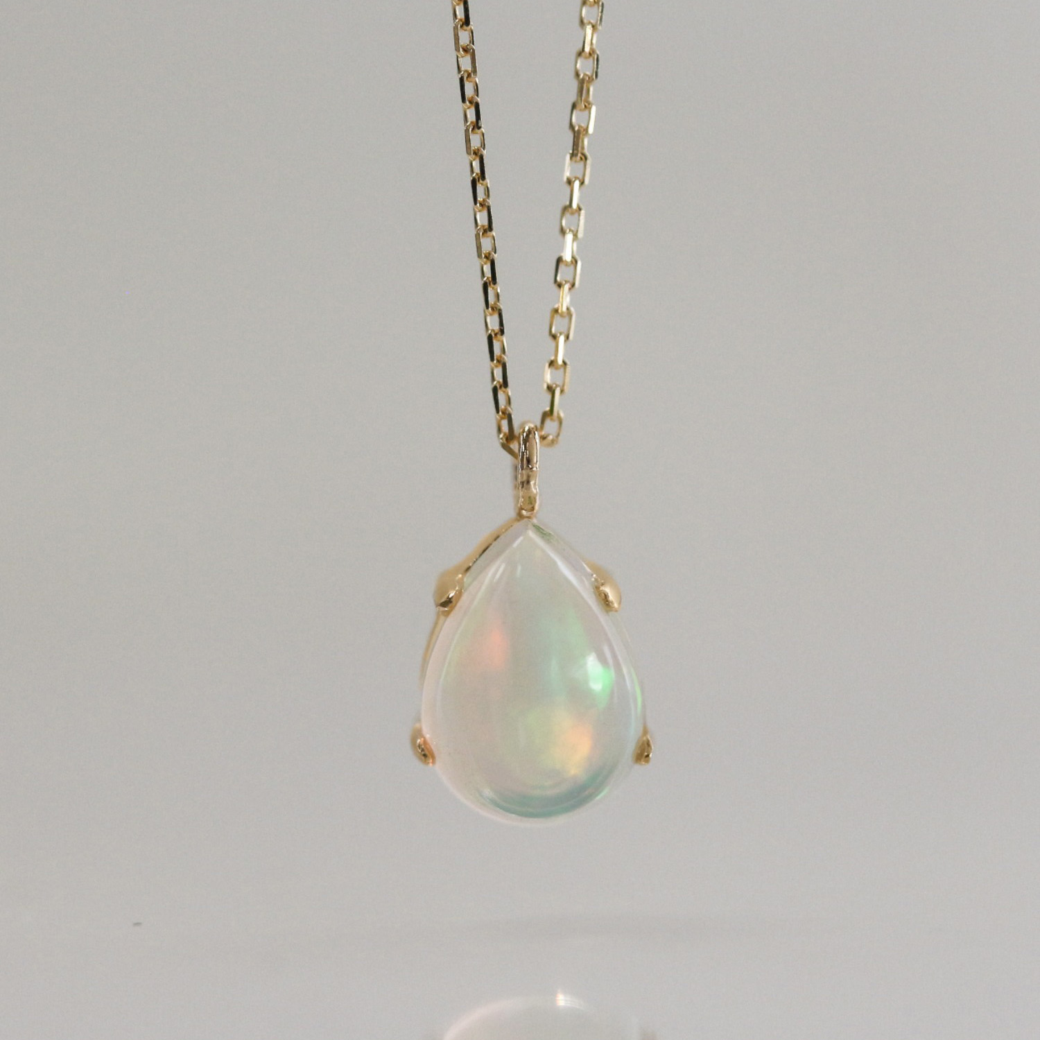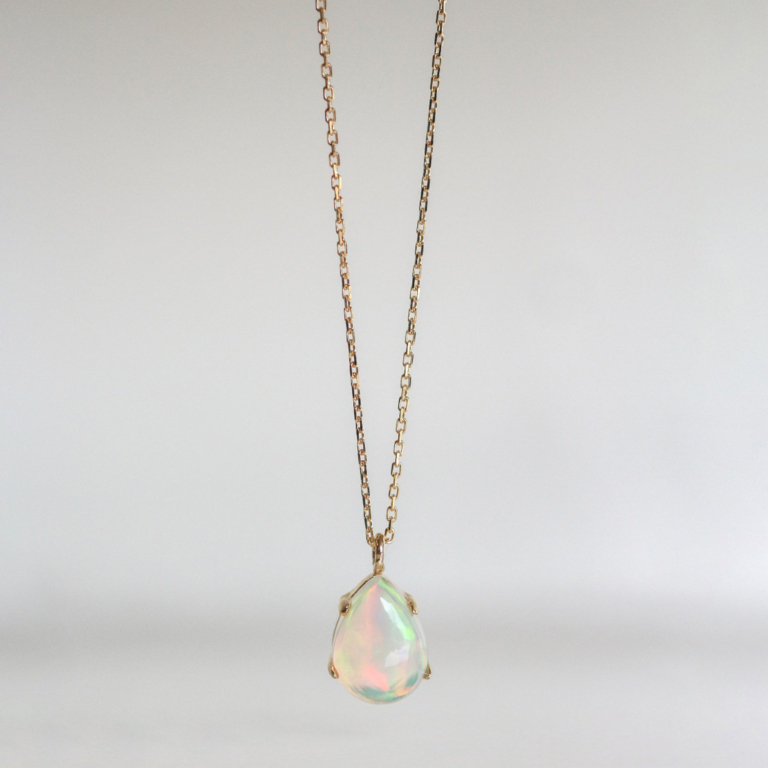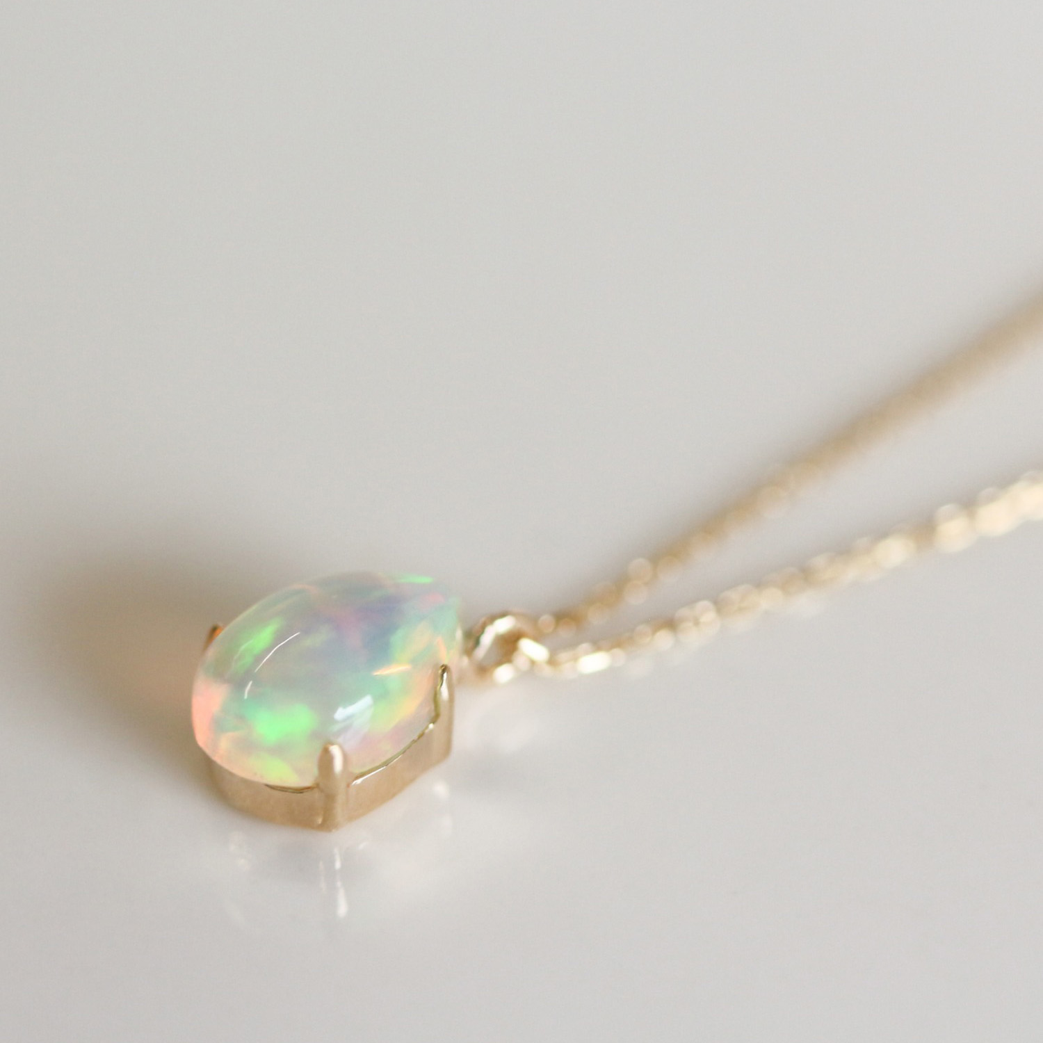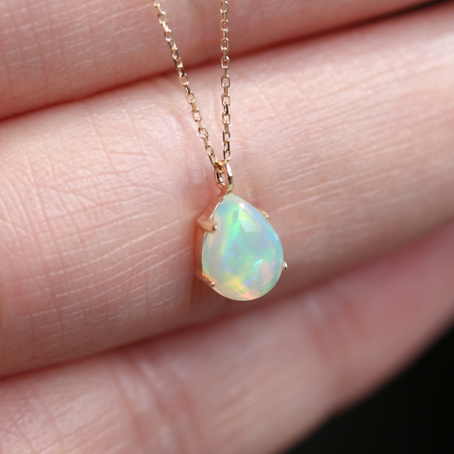 オーロラのような遊色が美しいオパールのペアシェイプカットのネックレス。