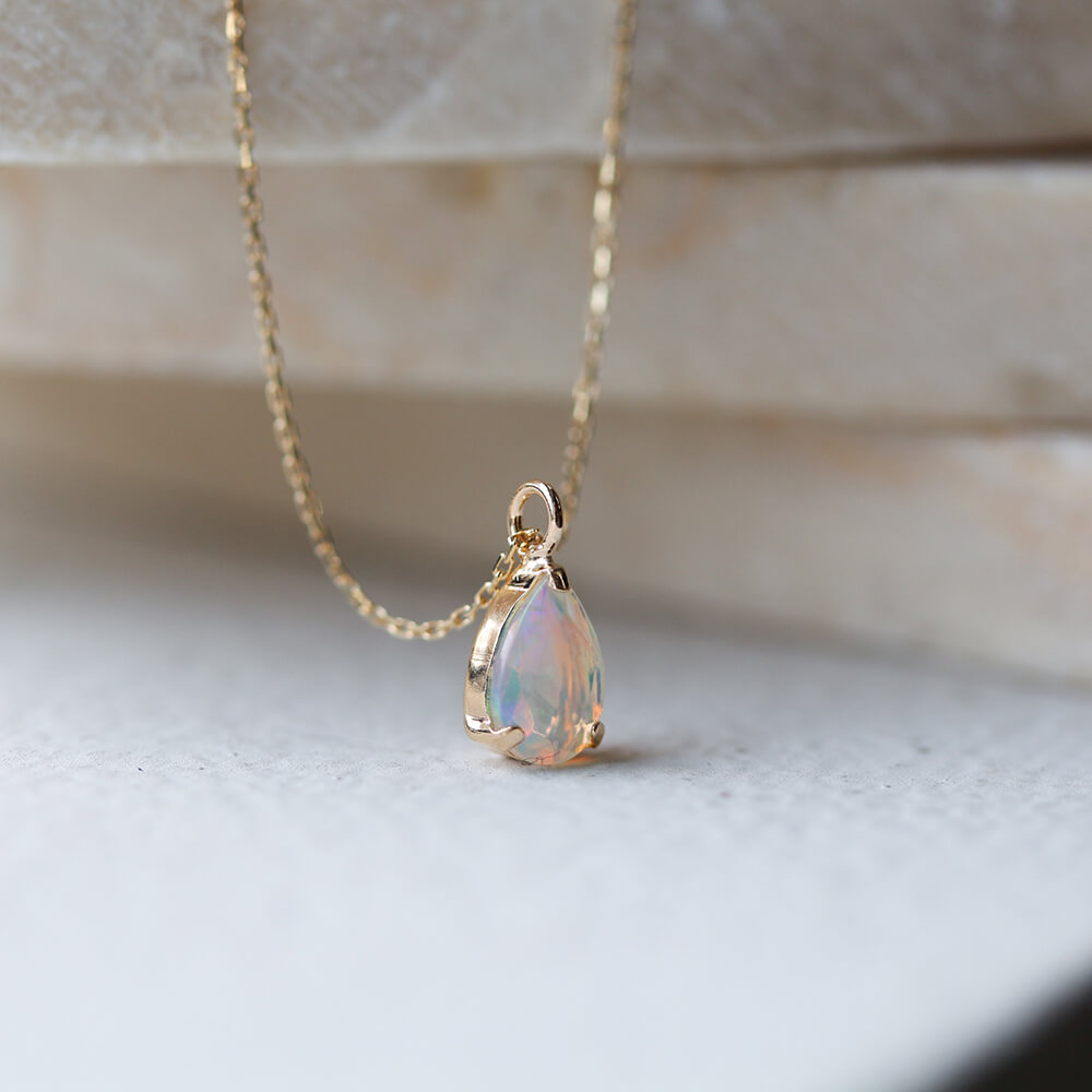 乳白色の石を覗くと、ゆらゆらと虹色の表情を見せる「オパール」
