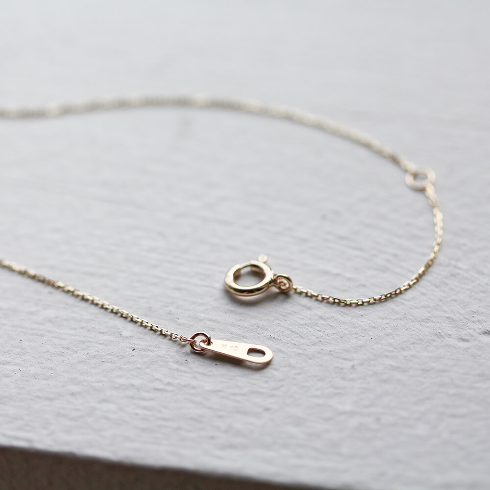 キャッチについているチェーンが、繊細な輝きで程良く存在感を放ちます。