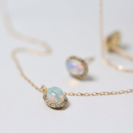 オパール / ダイヤモンド オーバル ネックレス | K18
