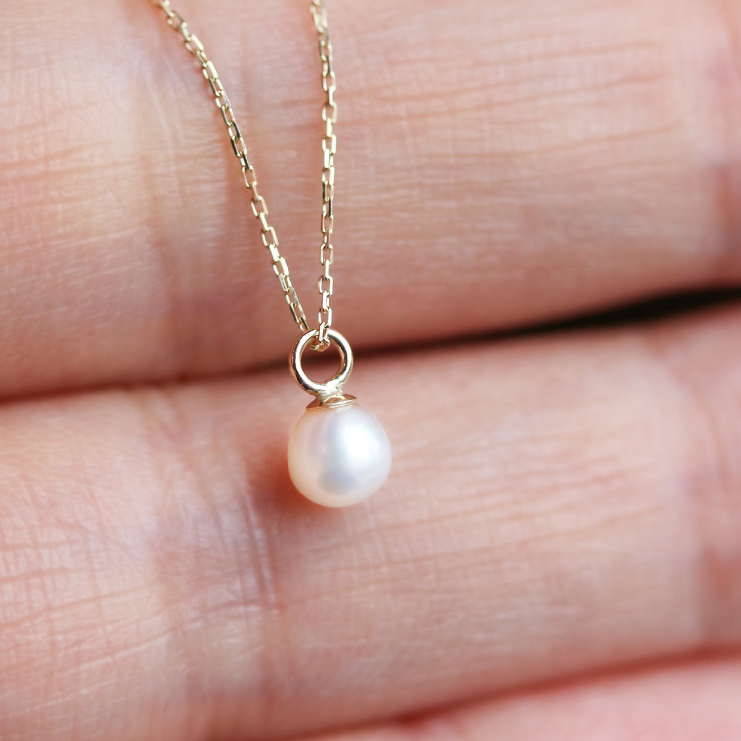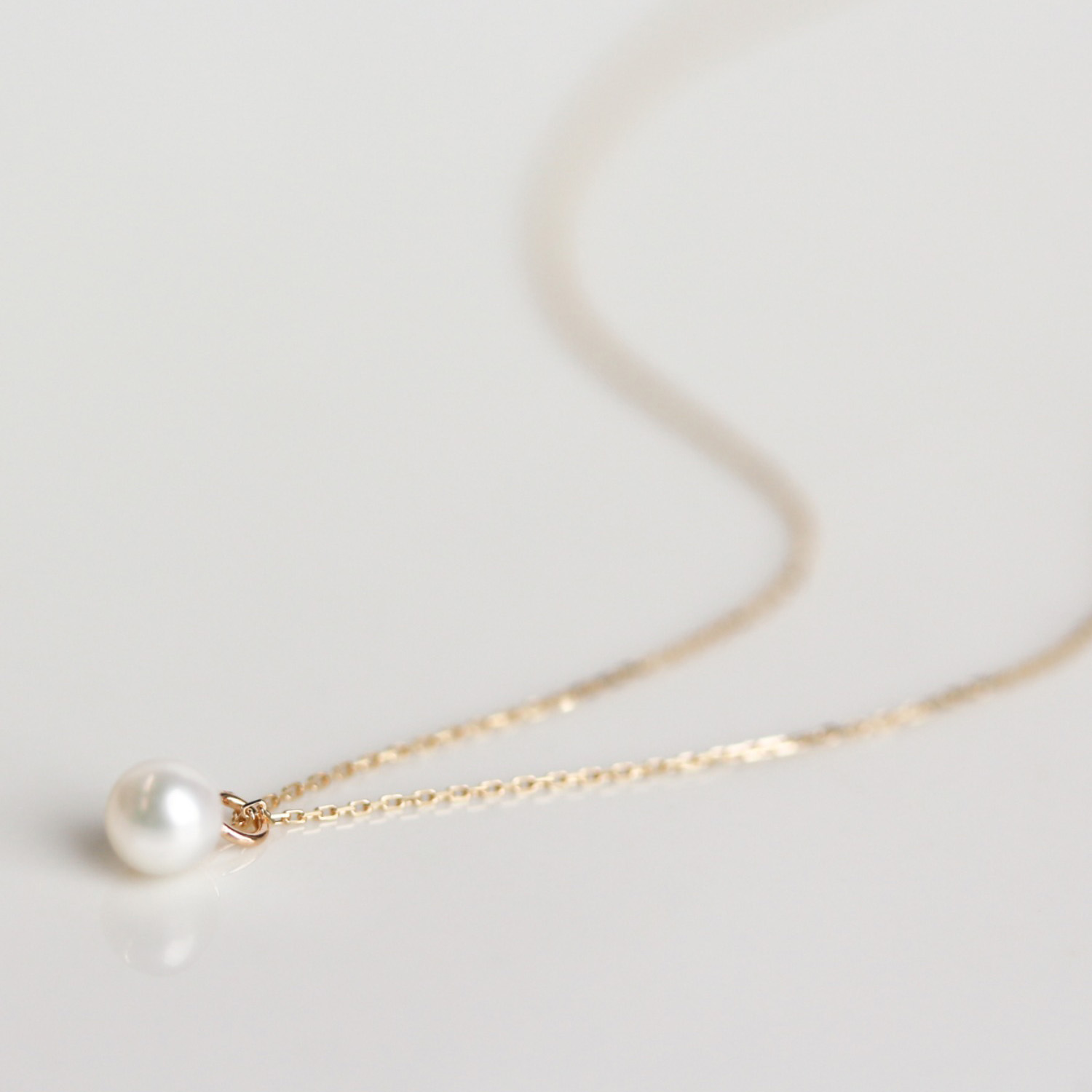 当店で一番華奢なチェーンに丸いパールを1粒あしらったジュエリー。