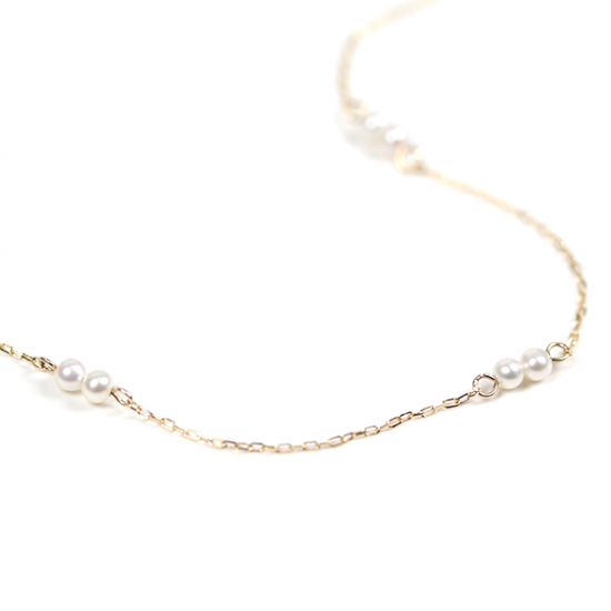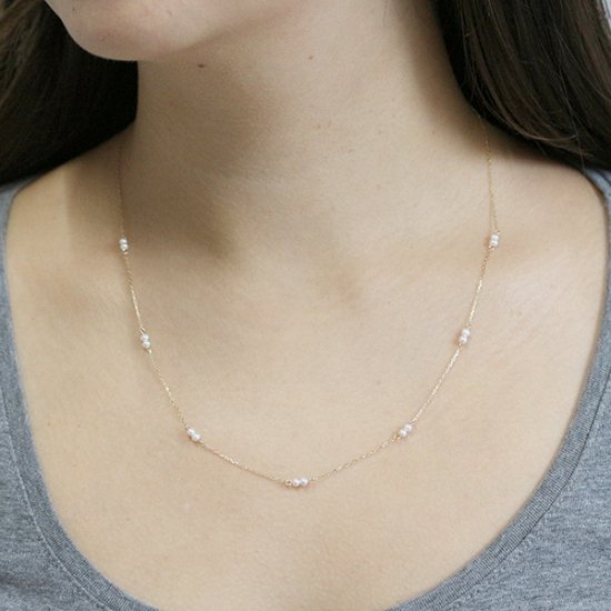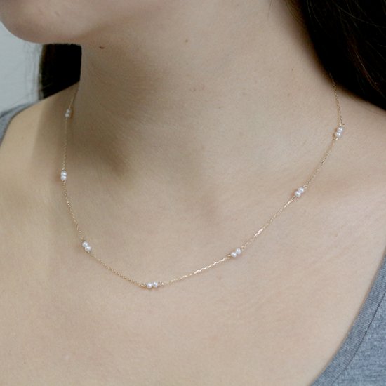 淡水パールを2粒ずつ、間をあけて配したステーションネックレス。