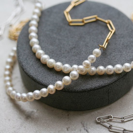 カジュアルスタイルにオススメのパールネックレス。