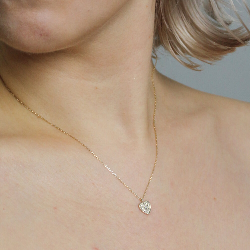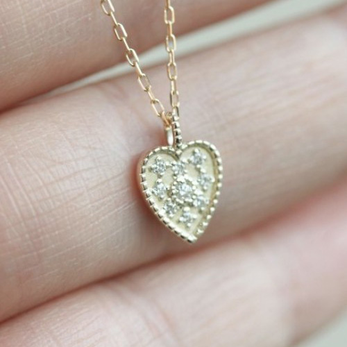 ダイヤモンド ハート プレート ネックレス | K10YG