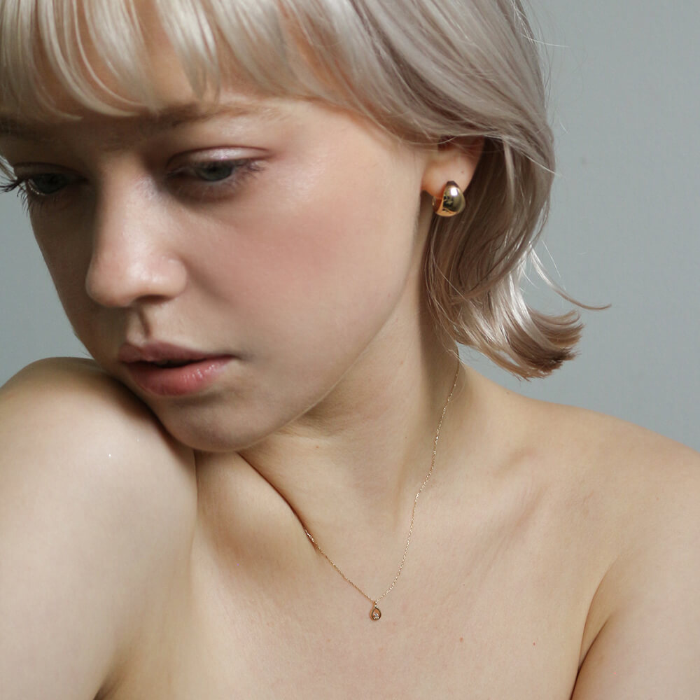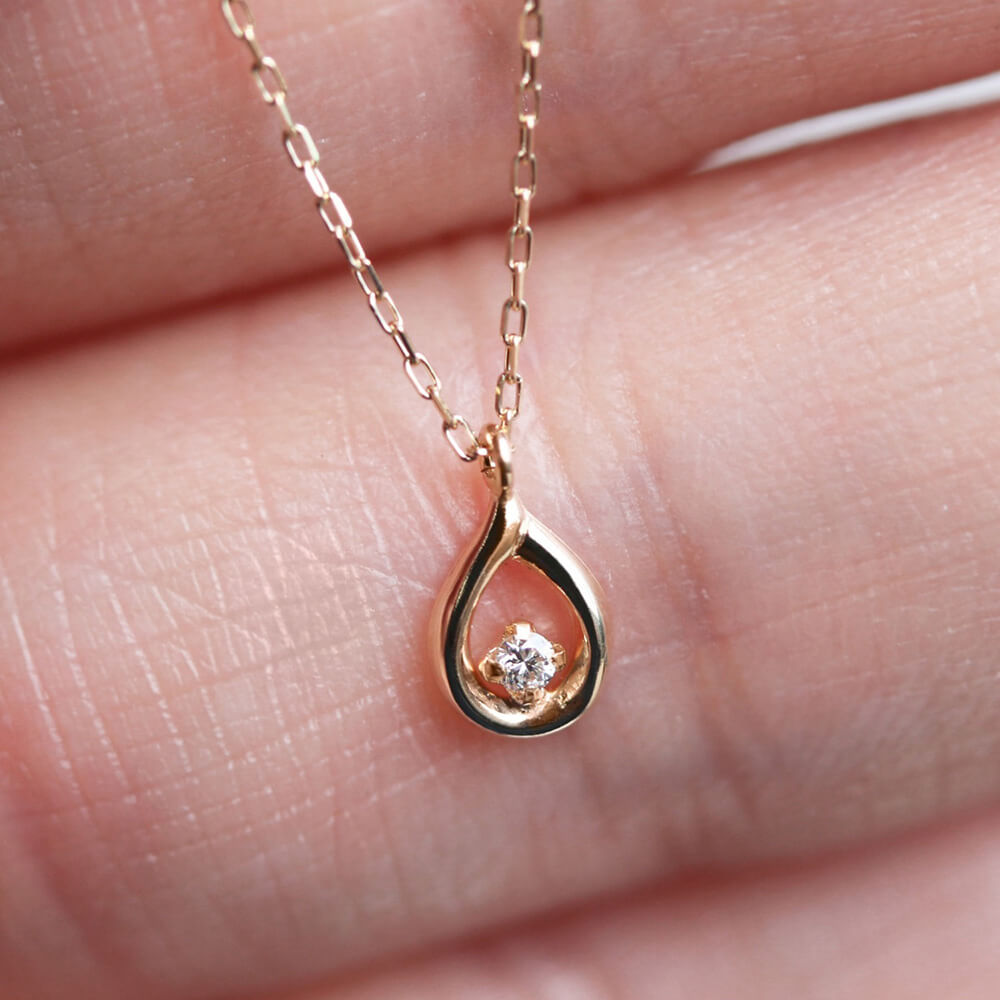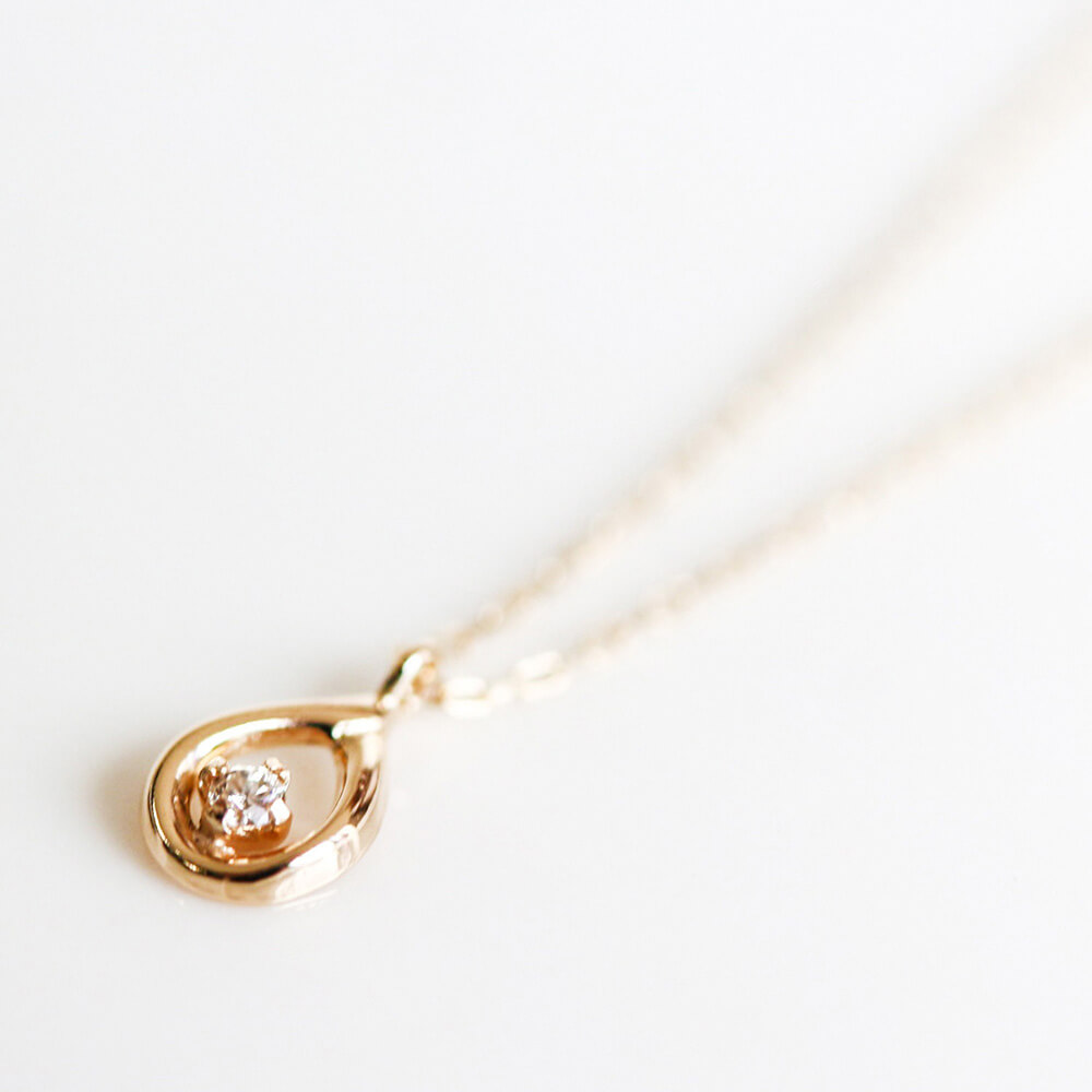 しなやかな雫型が女性らしさを引き立たせます。中央に施した繊細なダイヤモンドも控えめで、毎日気軽に身につけられます。