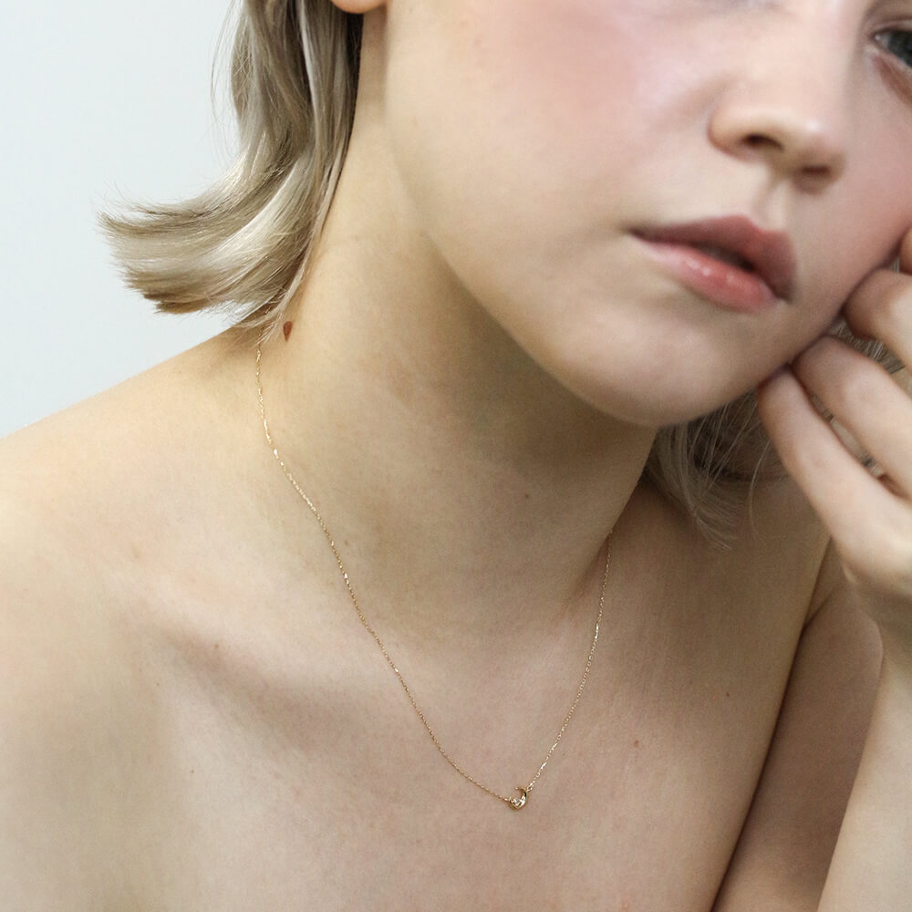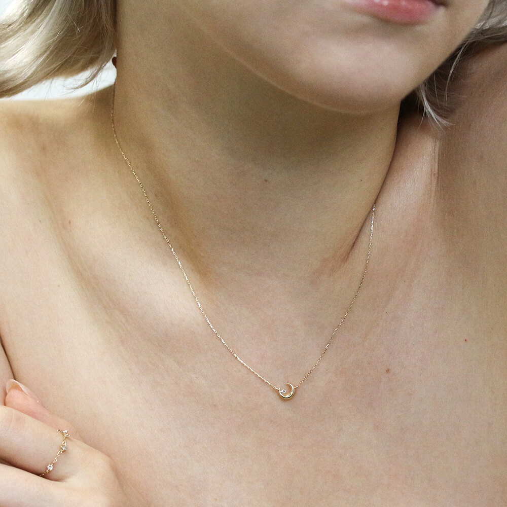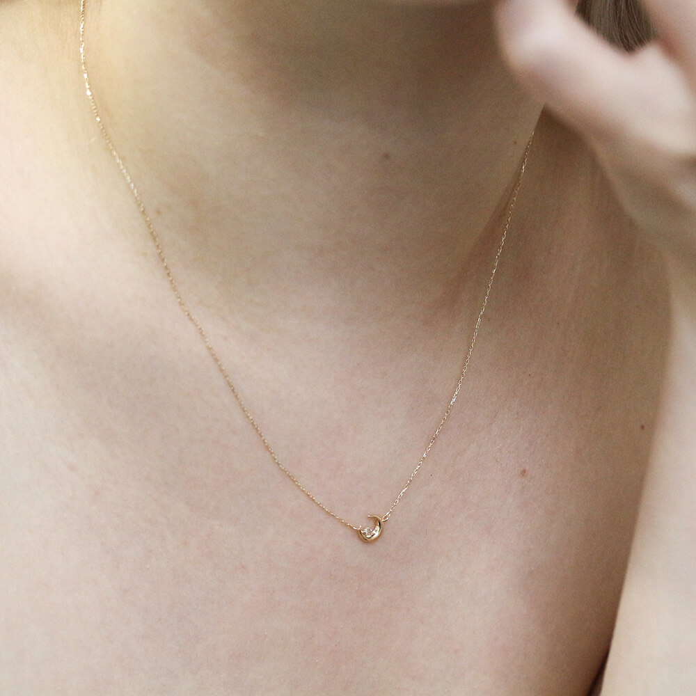 繊細なダイヤモンドを1石あしらったシンプルなモチーフネックレス。