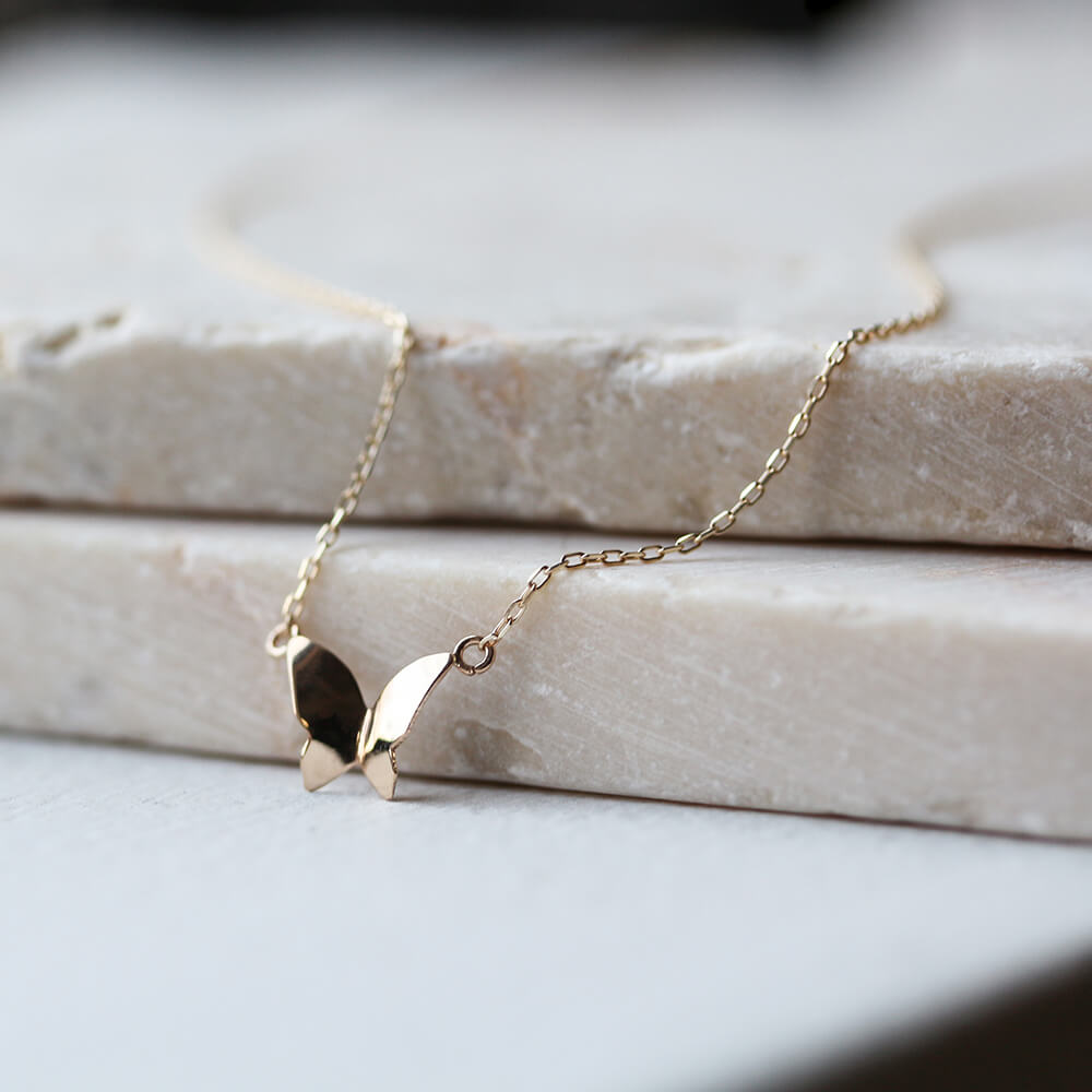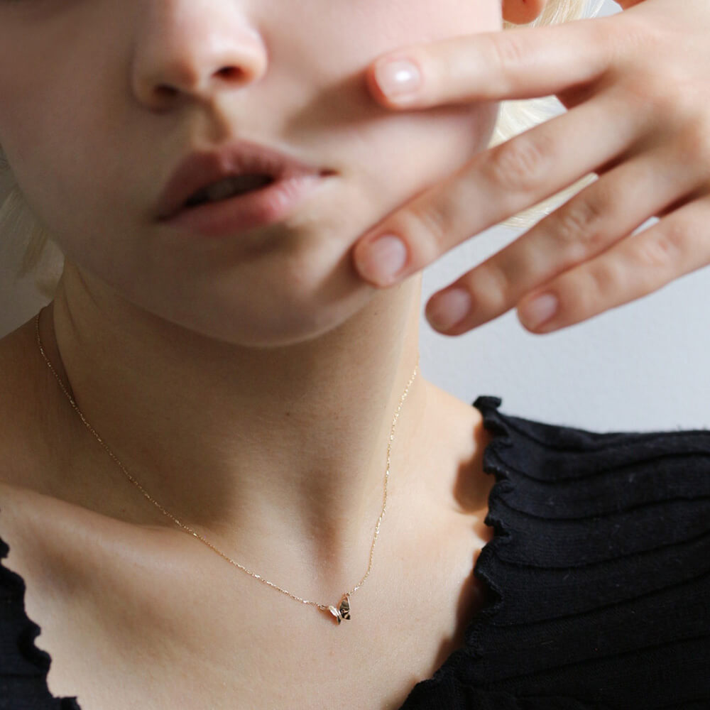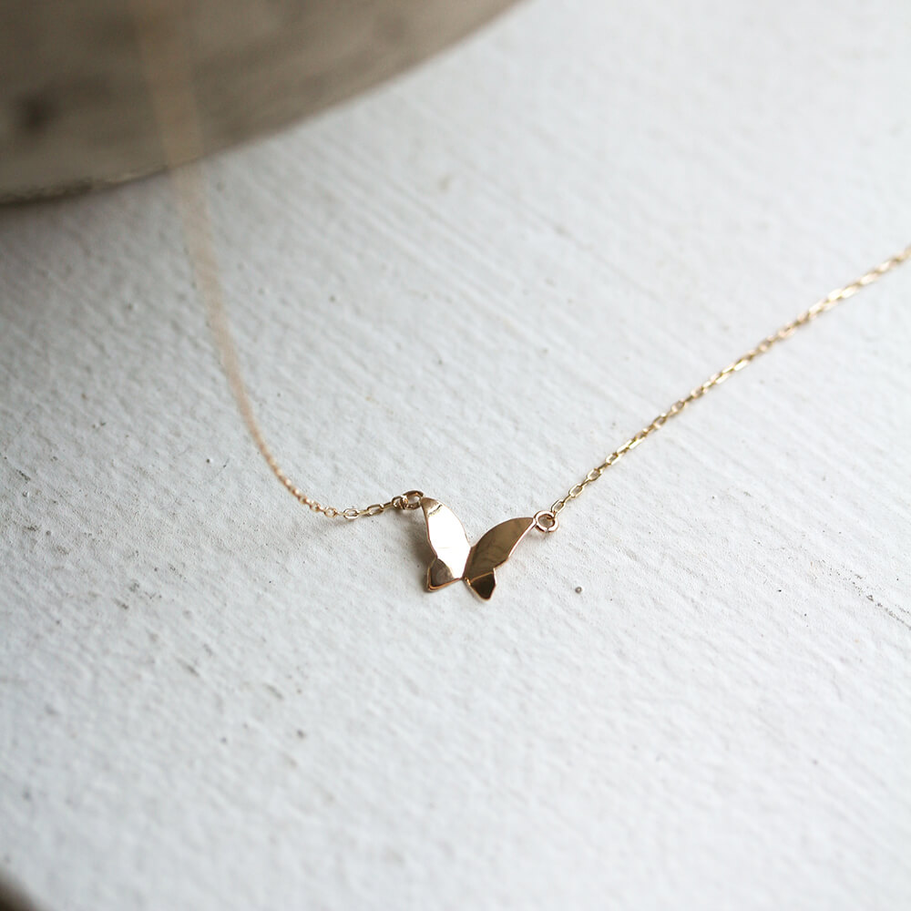 愛らしいバタフライが軽やかにデコルテに舞う姿が魅力的。