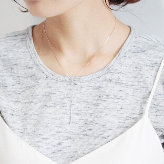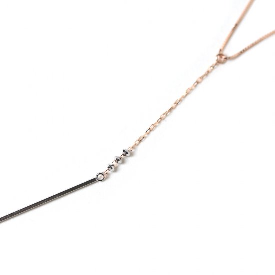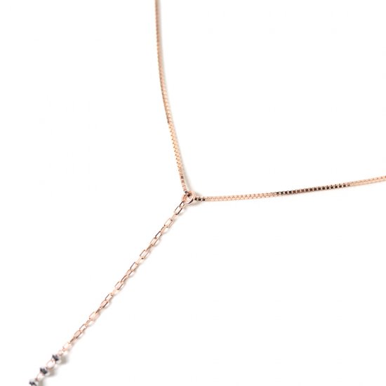 ホワイトゴールドとピンクゴールドを組み合わせたY字バーバーネックレス。