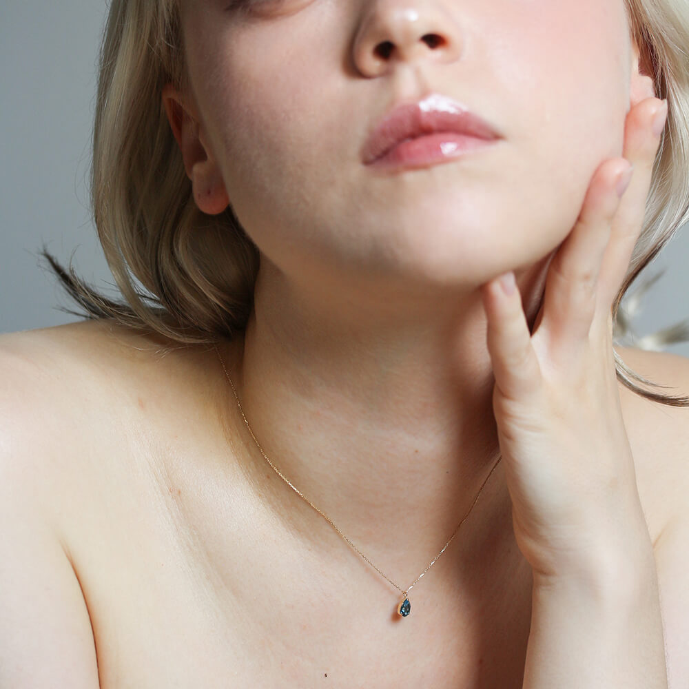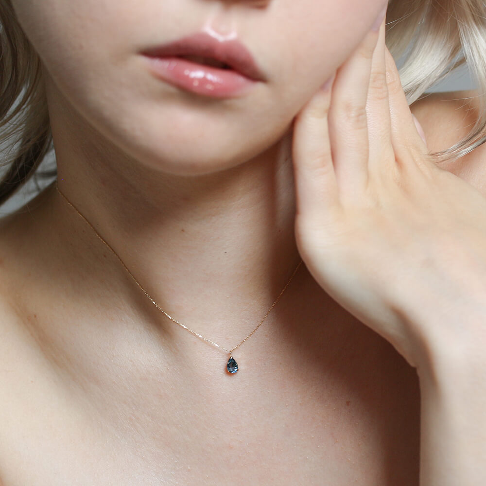 ロンドンブルートパーズ ペアシェイプ ネックレス | K10YG