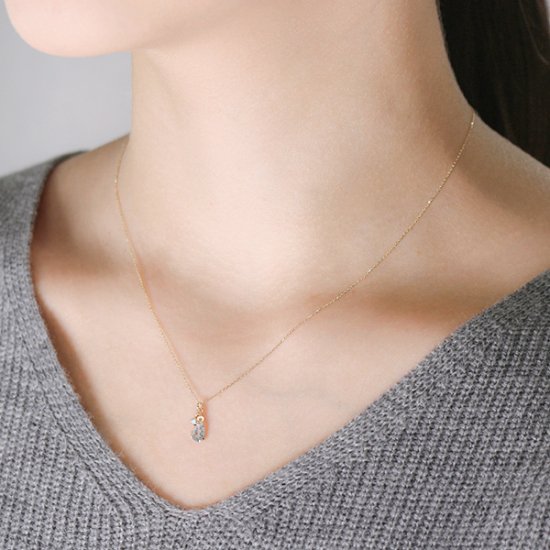 カットが異なる2石をあしらったトップは動きがあり、石の輝きを存分に楽しむことが出来ます。