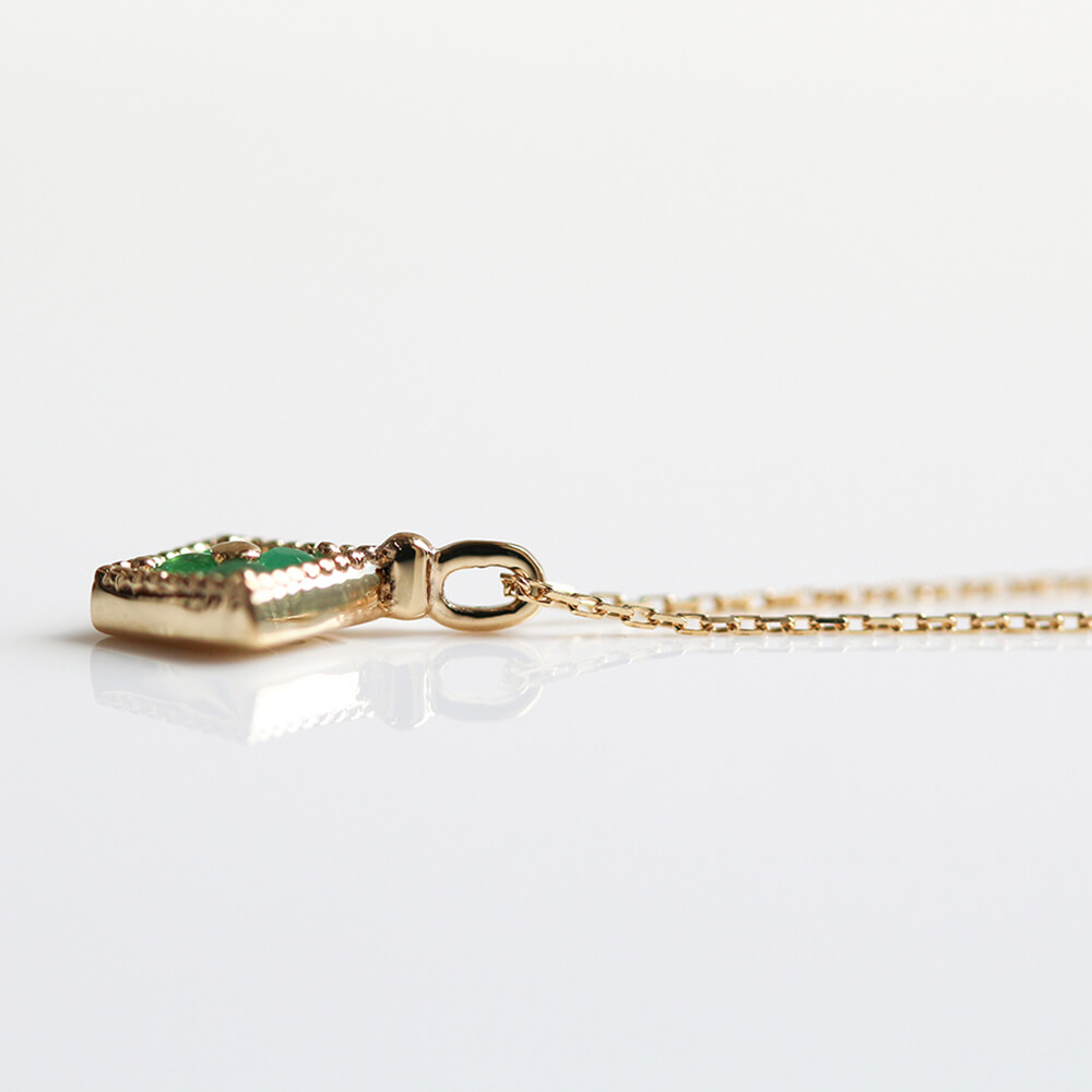 ネックレスなど、素肌に差すグリーンはおしゃれなコーディネートのアクセントに。