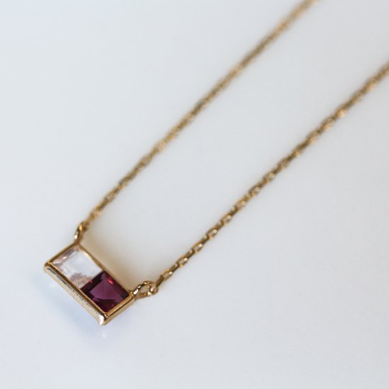ロードライトガーネット / ローズクォーツ バイカラー ネックレス | K10YG