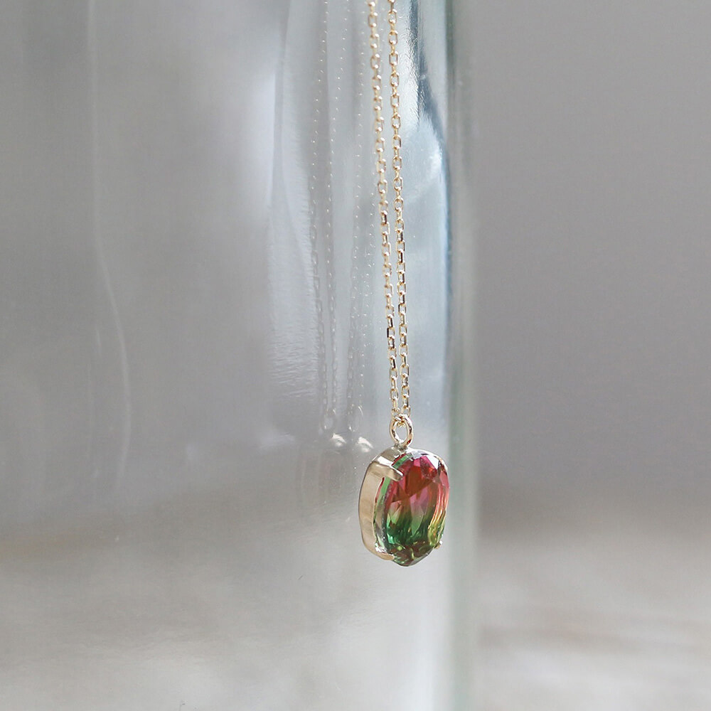 ※天然石の水晶を真ん中でカットし、極薄のカラーシートを間に挟み、色を出しております