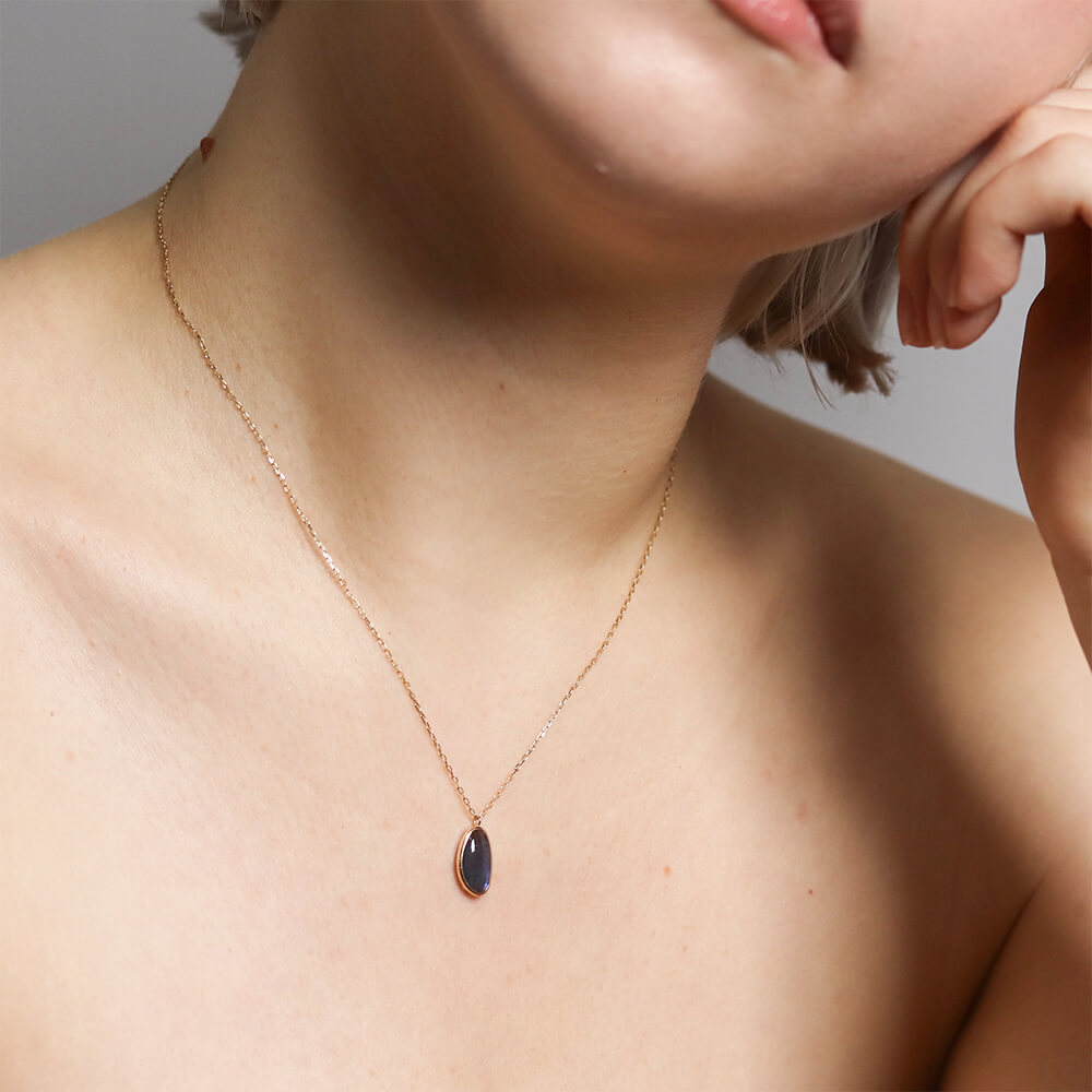 カラーストーン ネックレス | K10YG 〈ブルーオパール / ラブラドライト〉
