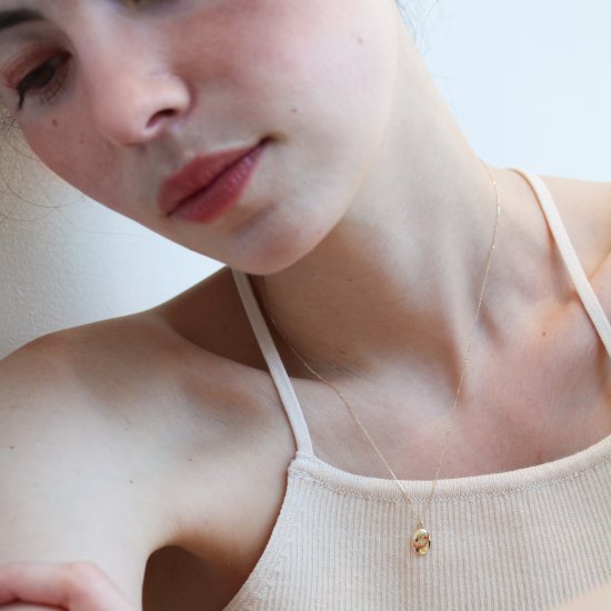 地金の程よいカジュアル感が、デコルテをナチュラルに仕上げてくれます。