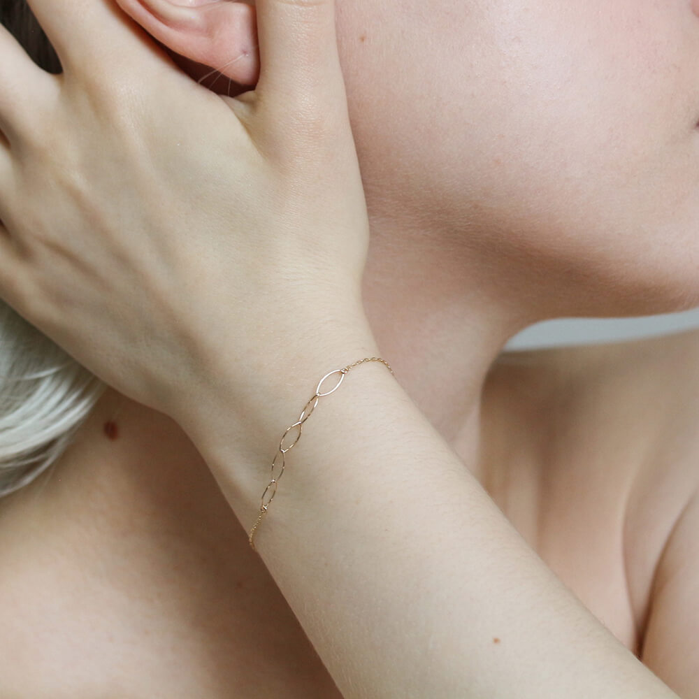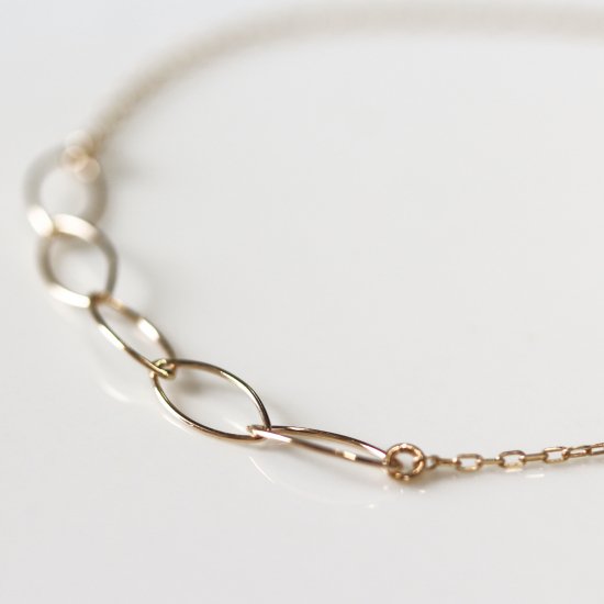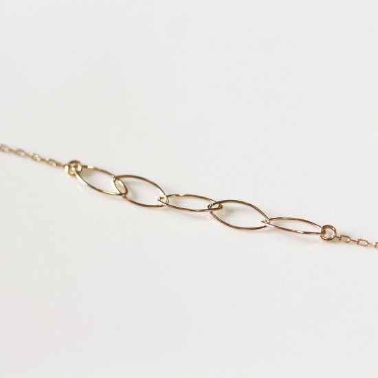 繊細で美しい輝きを放つK10イエローゴールドのリーフチェーンブレスレット。