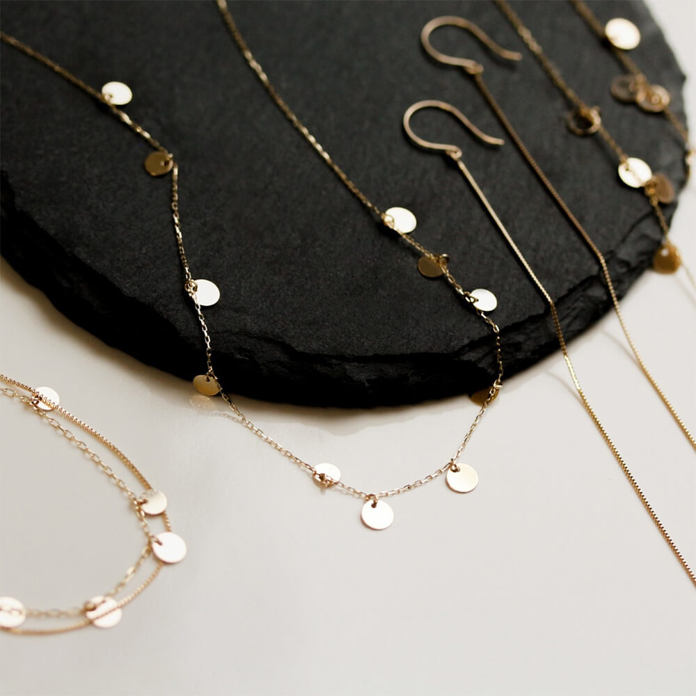 小豆チェーンとヴェネチアンチェーンが、それぞれが弾むように揺れる事で、