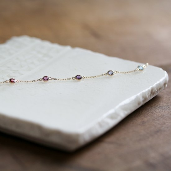 石   :ブルートパーズ、アイオライト、アメジスト、ロードライトガーネット、ガーネット、シトリン、ペリドット