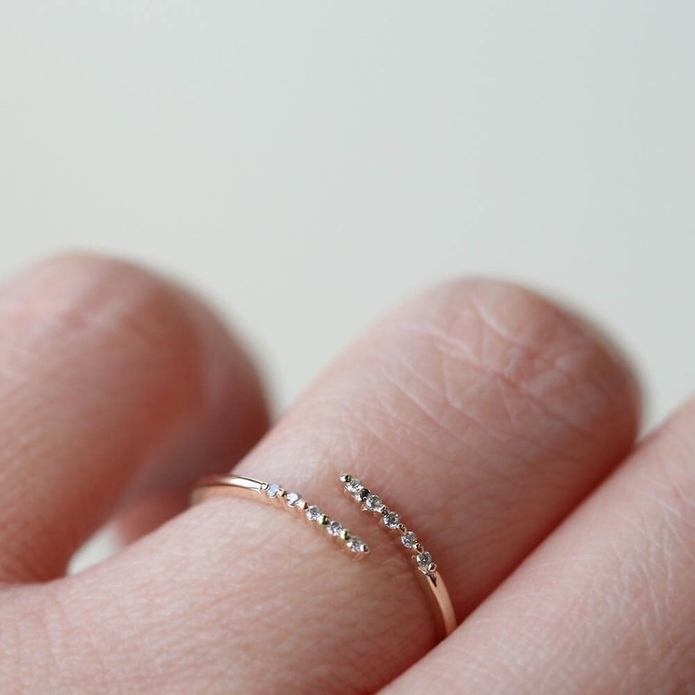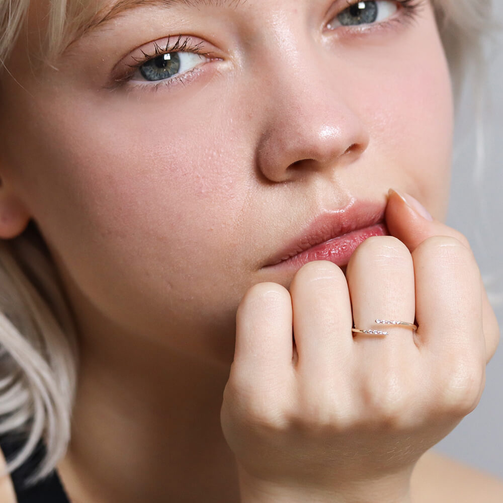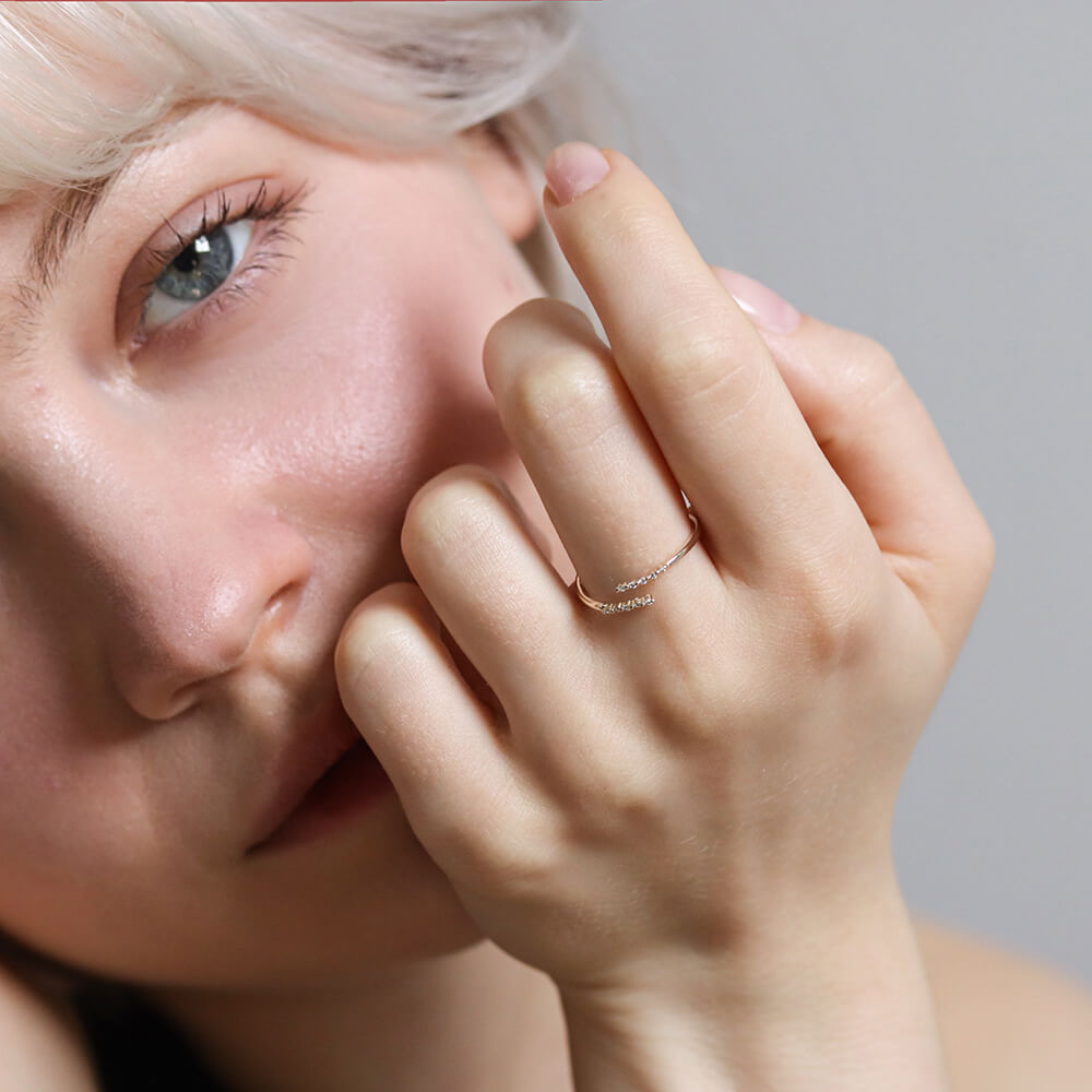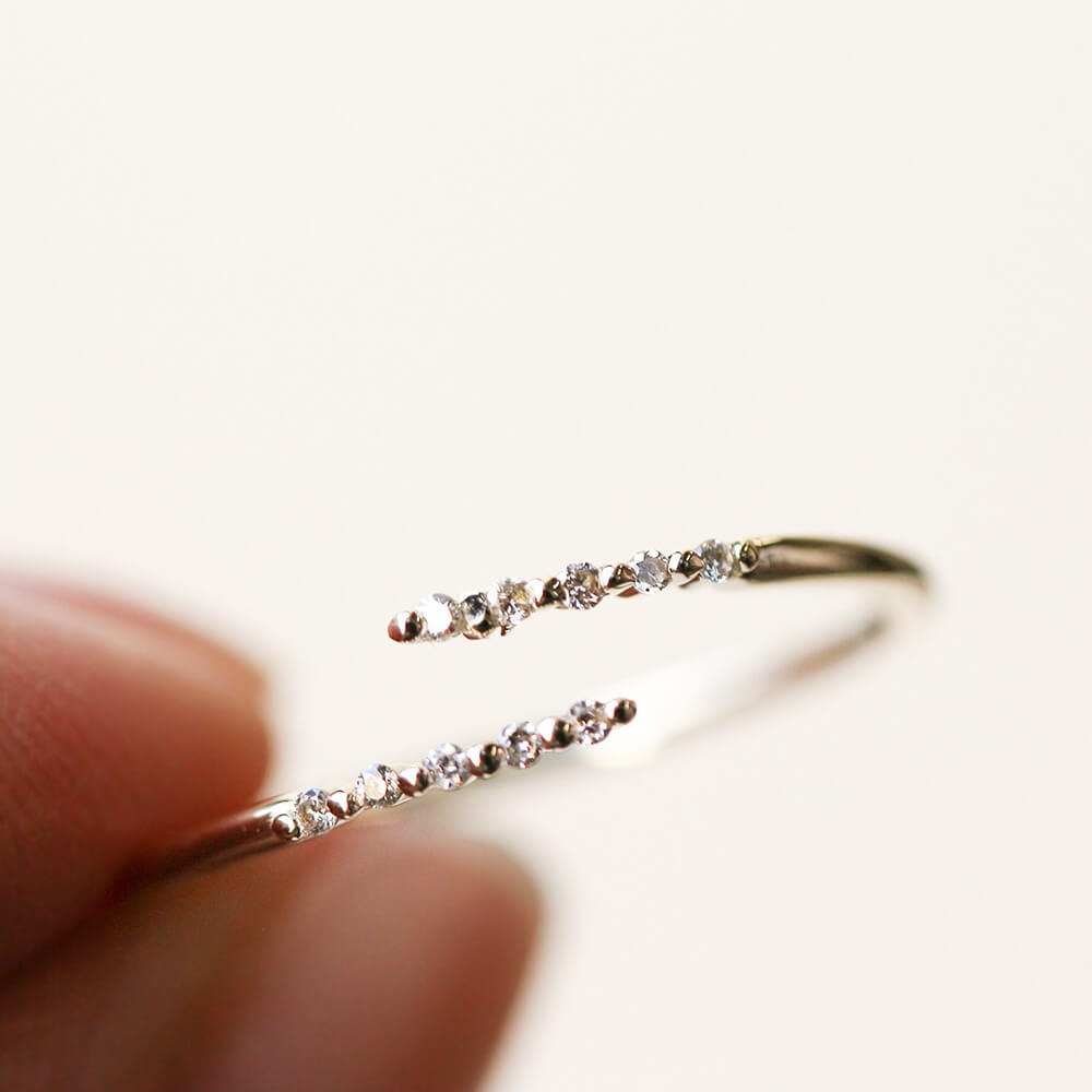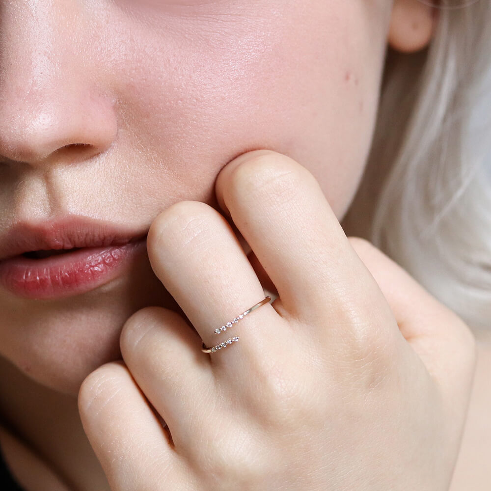 華奢なアームが指をナチュラルに美しく魅せるダイヤリング。